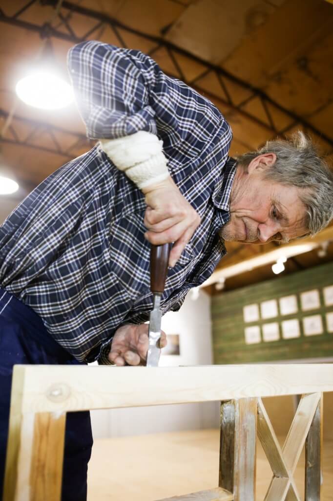 Богдан чинит старый советский рубанок.