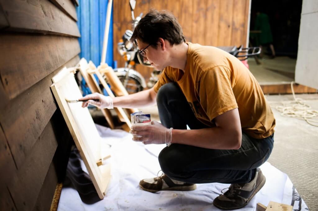 Важно! Если вы любите красить, то приходите к нам! Работа найдётся для всех, и не какая-нибудь, а судостроительная. Красить карбас, например, — это почти поэзия. Всех поэтов и художников ждём на верфи! Совершеннолетние наши товарищи пилят и клеят заготовки всего на свете для Игоря и Артема. Игорь и Артем делают из заготовок всё для карбасов — вёсла, брештуки, подлегарсы — а потом устанавливают их. Пришли на верфь регатные аптечки.