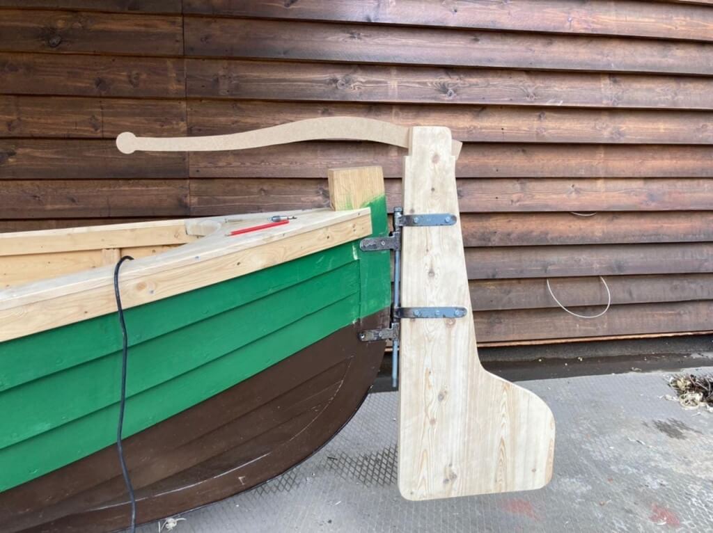 22 июня. Например, сегодня дочертили общий вид карбаса и напечатали его — можно смотреть и любоваться. Напечатали и чертёж руля (исправленный и дополненный). Теперь можем вырезать рули по шаблону. После этого Миша занялся информационной тумбой, которой в ближайшем будущем тоже можно будет полюбоваться. Игорь доделал привальный брус и принялся за банки. А Никита варил петли для руля. Такие дела.