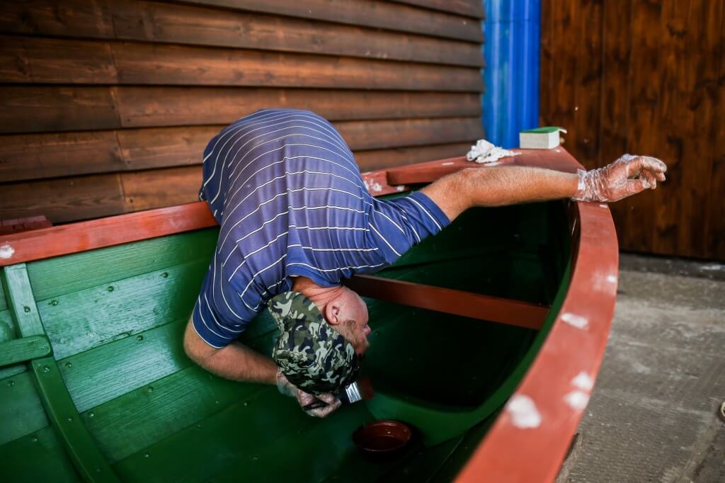 1 июля. Пришел Даня. Пришел и красит. Даня поступает на истфак, а в свободное время решил помочь нам на верфи – мы очень рады. Вообще, сейчас на верфи идут в основном лакокрасочные работы. Первый карбас покрасили на третий слой. То есть, он практически готов! Ждем только паруса. Скоро будем грузить его на прицеп и готовиться к спуску на воду. Второй карбас прогрунтовали и начали красить внутри. Покрасили девять весел. Всем карбасам назначили имена. Какие – пока не скажем. Игорь делает весла. Сегодня доклеили для них последние две заготовки (всего их двенадцать). Артем изготовил два брештука, закончил это дело на день раньше. Еще сделал подлегарсы и начал устанавливать планширь на третий карбас. У Миши с Сашей Антоновым готова табуреточка, она же тумба, она же створный знак. А еще начали делать душевую. Пока идет первая стадия работ, а именно – крушение. Но очередь в душ можно занимать уже сейчас!