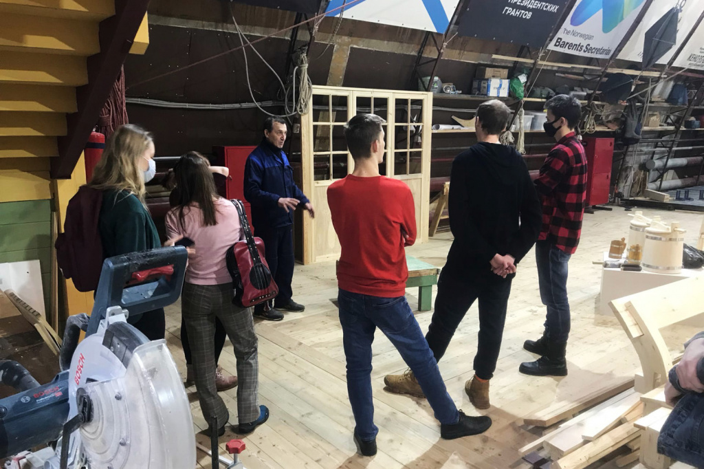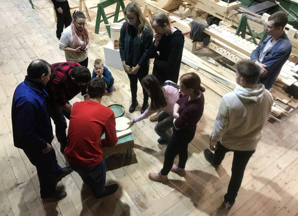 На мастер-класс пришли студенты с кафедры Технологии художественной обработки традиционных для Русского Севера материалов и их преподаватели: Александр Васильевич Ануфриев и Сергей Павлович Копейкин.
