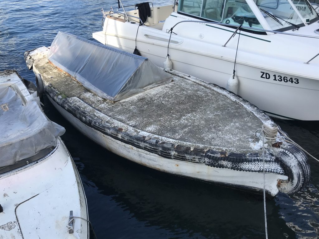 Пример хорошо упаковоной лодки. Решена проблемма прохода тента между леерными стойками.