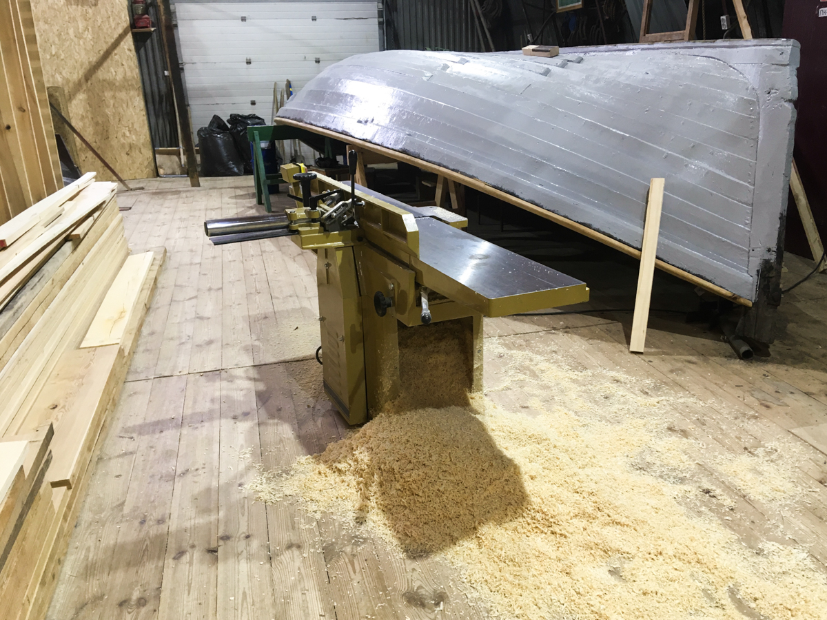 Артем продолжает делать планширя и подлегарсы. Даня пришел после обеда и стал ему помогать.