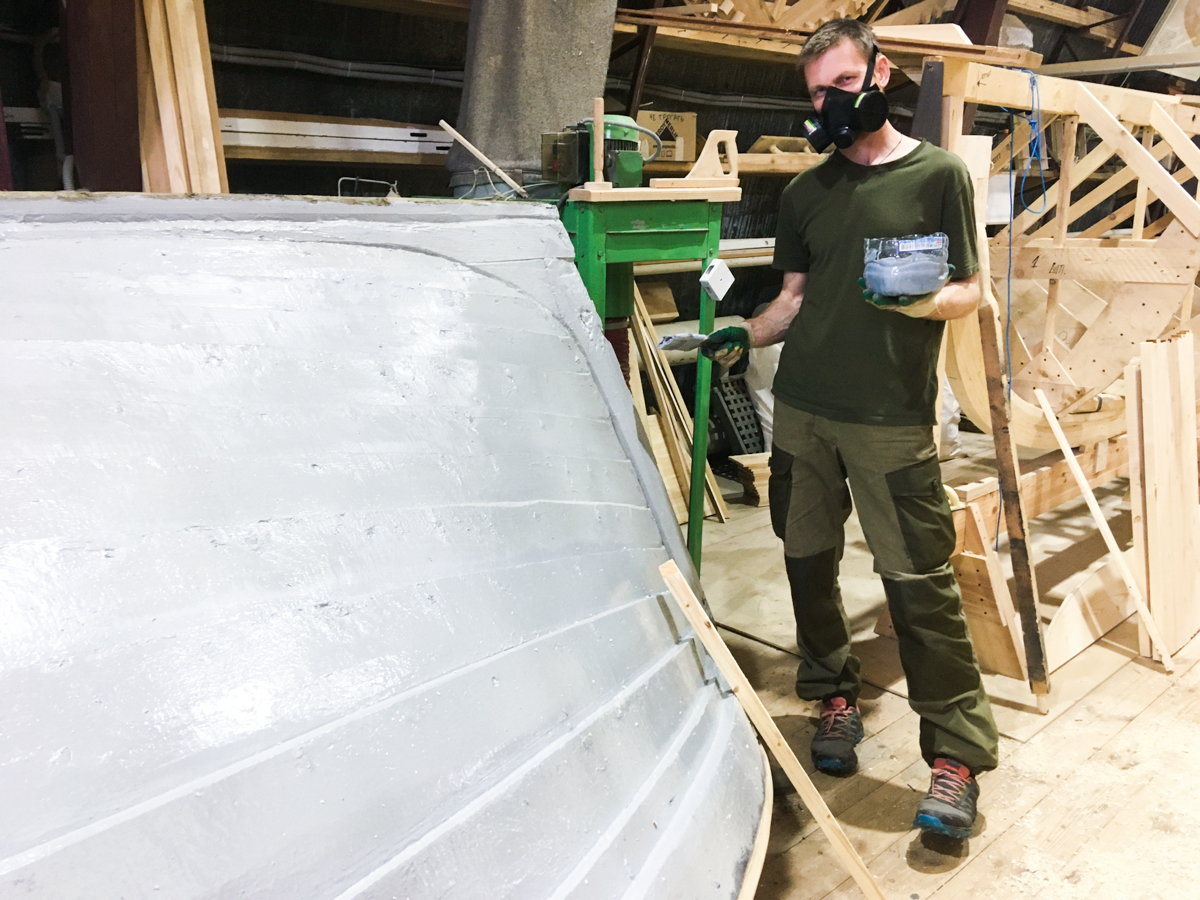 Артем неутомимо доделывает второй карбас. Сделал для него привальные брусья.
