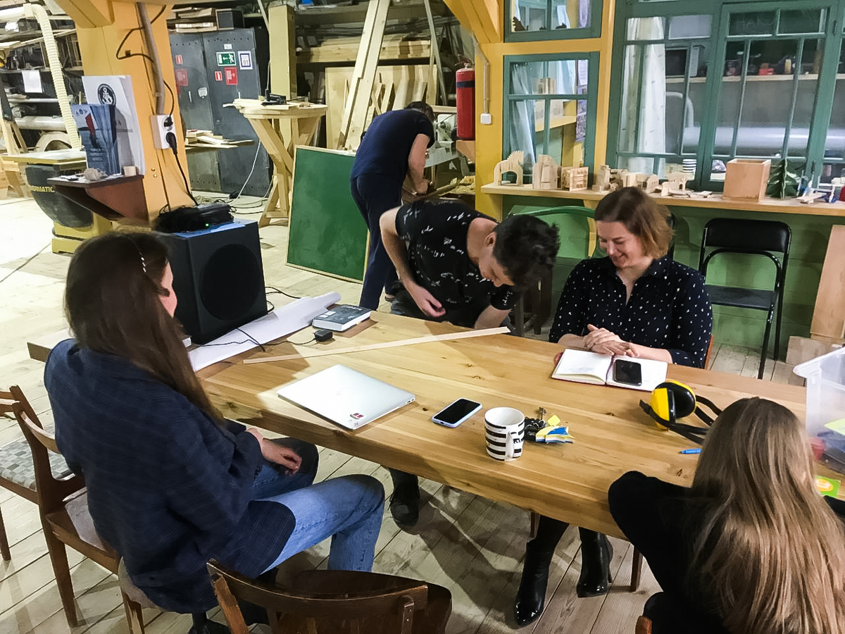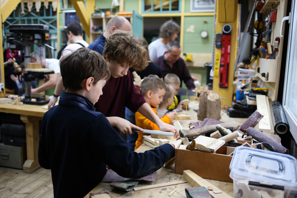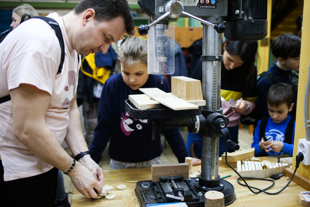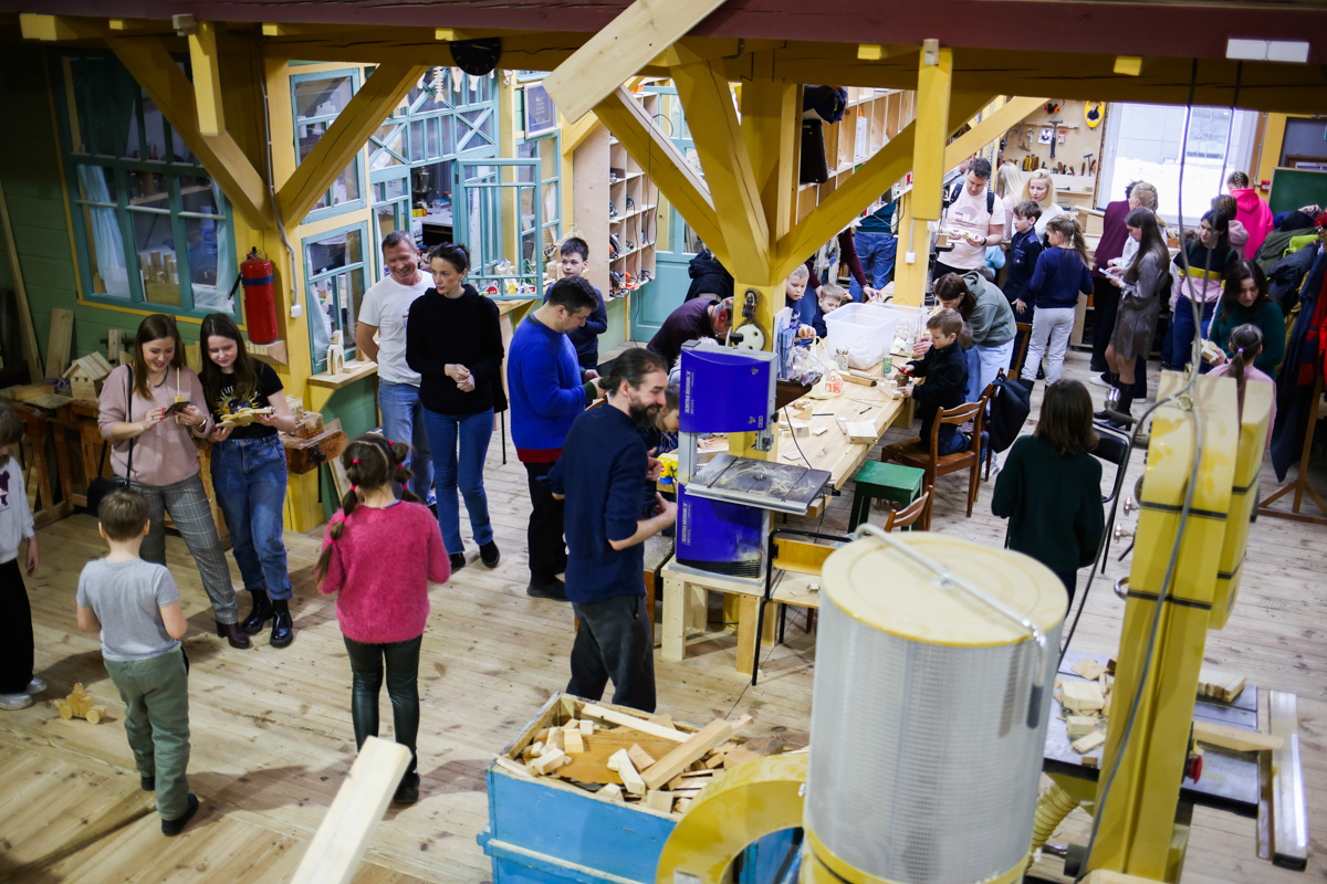 Миша Герасимов и Саша Антонов (который был босиком, потому что устал чистить обувь) целый час не отходили от станков, чтобы вырезать по детским чертежам детали для всех-всех кораблей. Гости верфи проектировали, собирали, клеили, шкурили – и все от мала до велика ушли домой при своих корабликах.