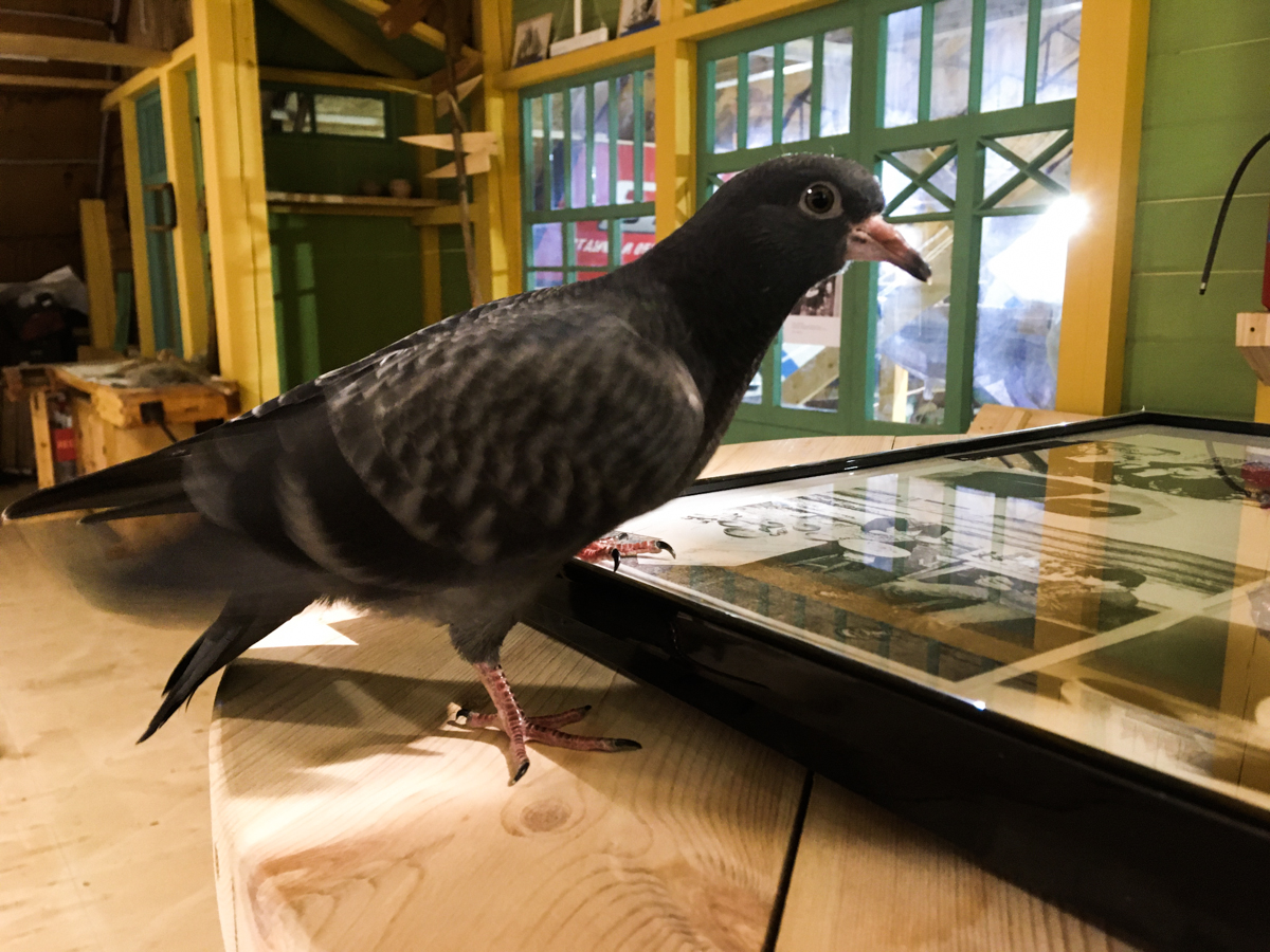Катин голубь, который на прошлой неделе еще не летал, на этой уже так хорошо натренировался, что взлетает аж на лодку на высоте трех с половиной метров и, по счастью, самостоятельно оттуда спускается. Скоро полетит жить на воле.