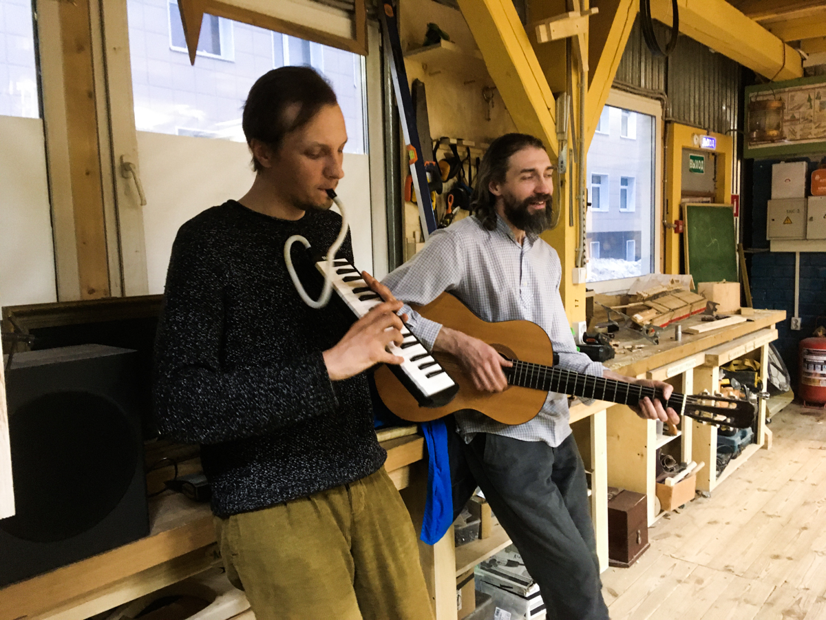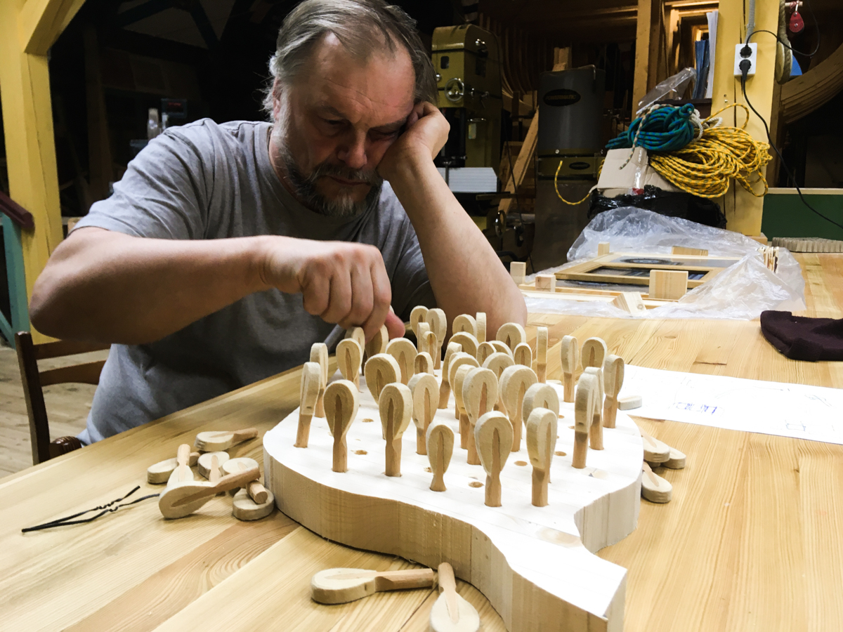 Миша с Женей делают проект помещений шхуны, Артем – карбас, ребята – рули для карбасов и зашивку потолка. Работаем в ожидании весны.