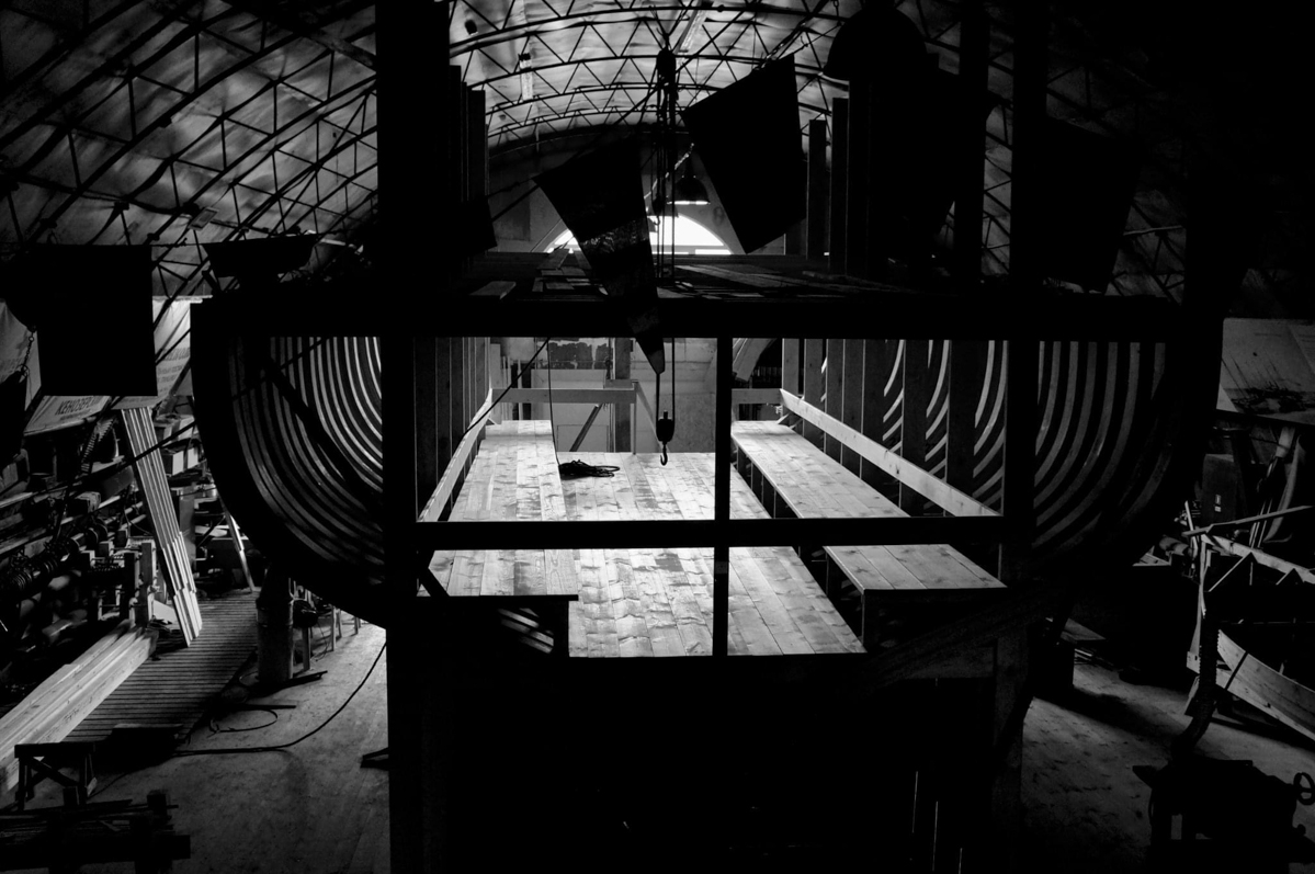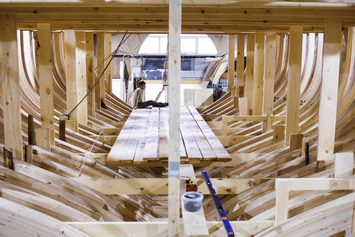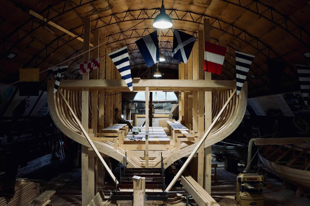 Для гранта «Топорное дело» мы уже начали монтировать временный пол в шхуне.