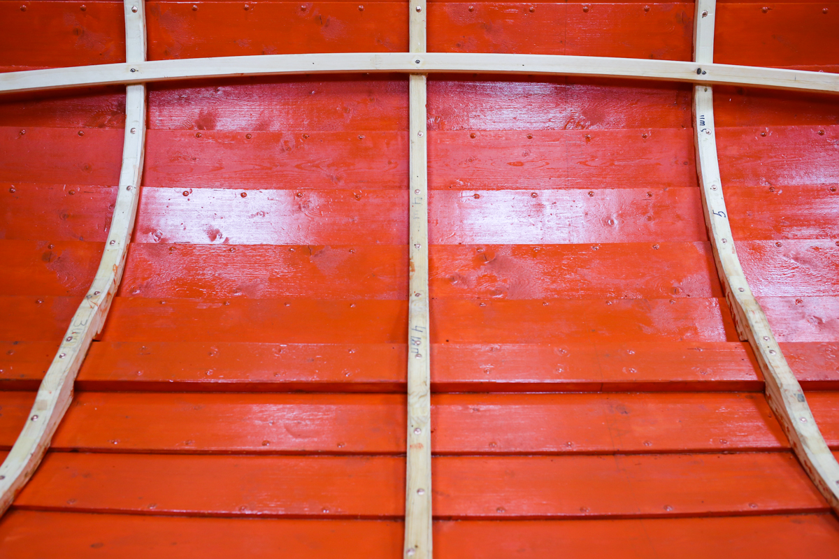 Карбас под мастер-класс по уфтюжской росписи покрасили красным на первый слой.