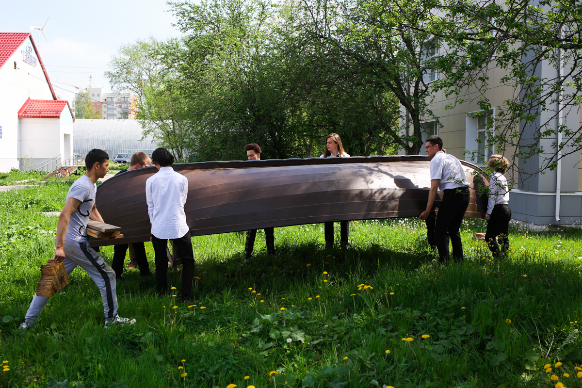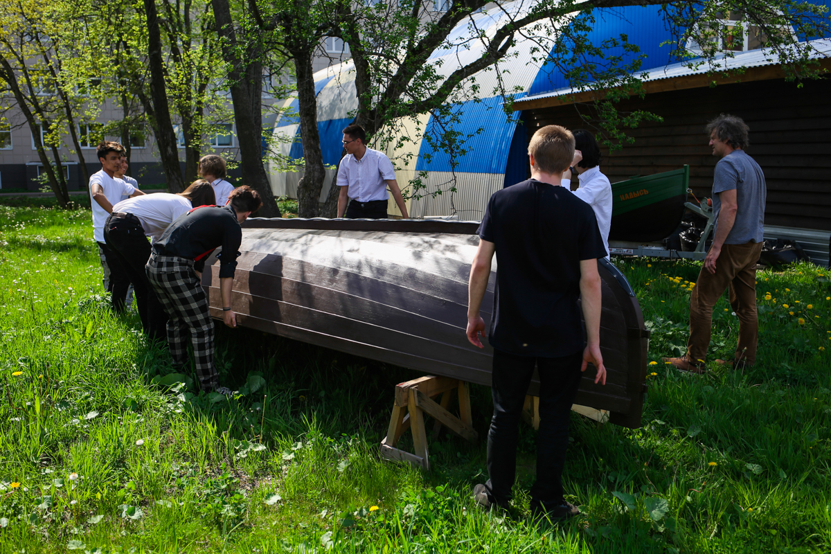 Практиканты из 25 лицея помогают строить карбас по Президентскому гранту.