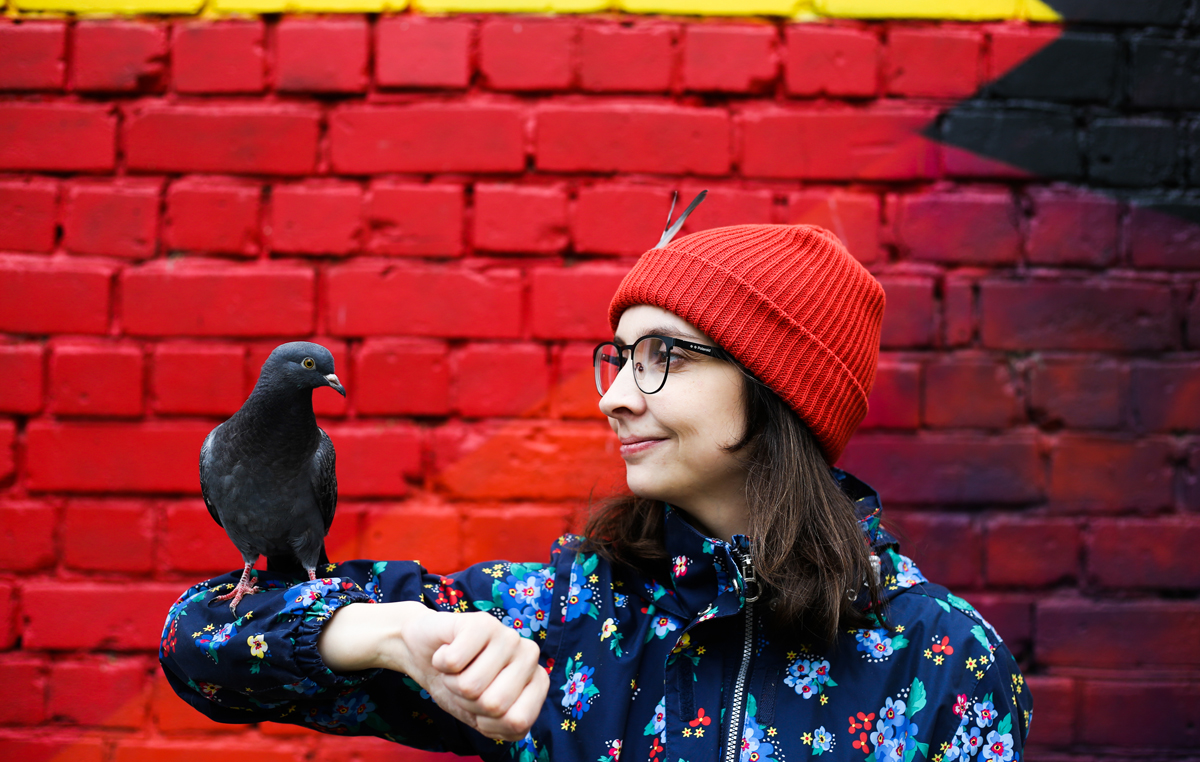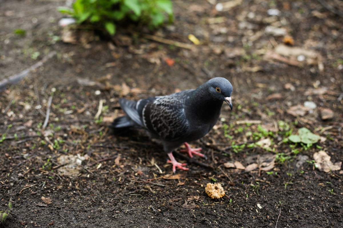 Катя выпустила голубя Пашу на волю, птица с первой минуты повела себя как истинная птица и принялась искать еду в траве вместе со всей своей новой стаей.