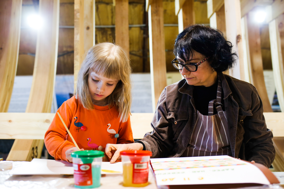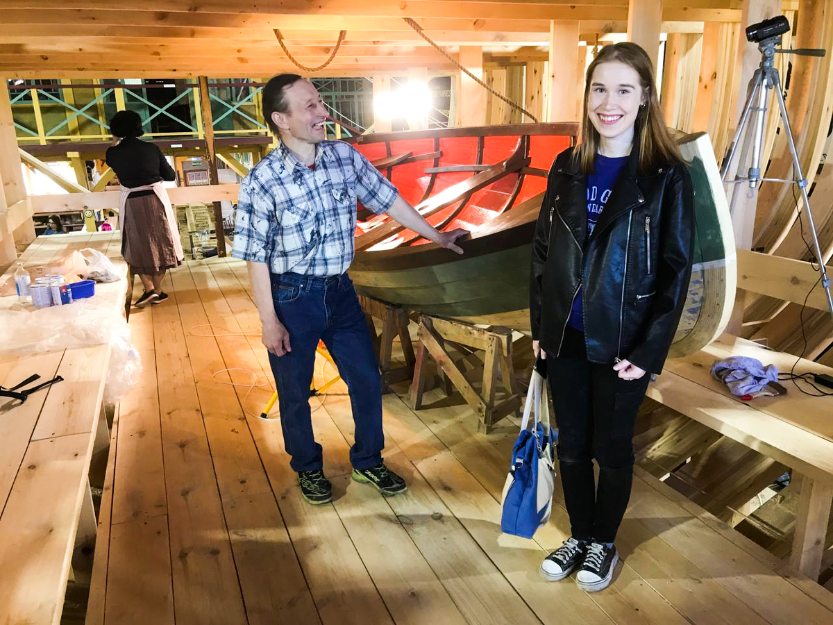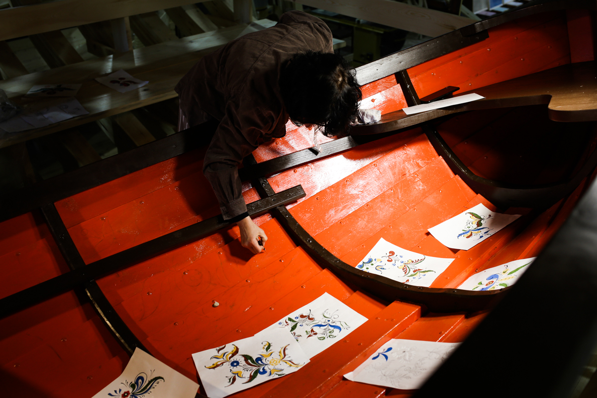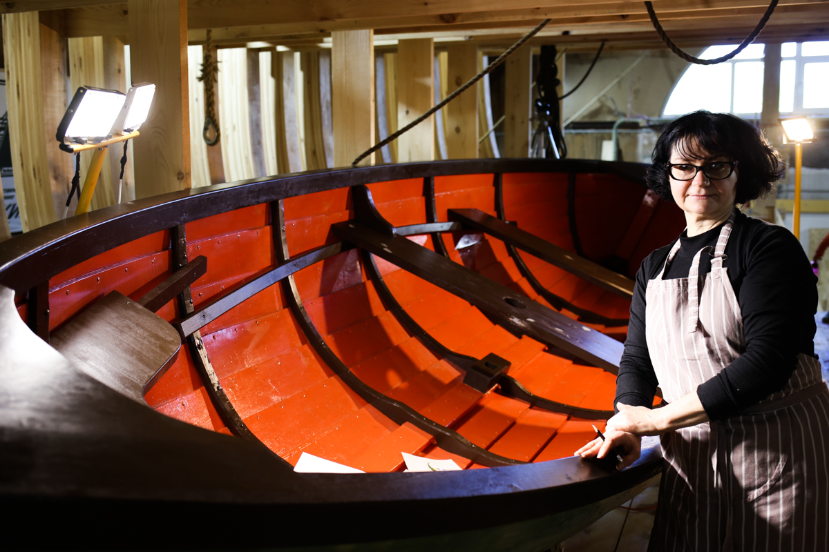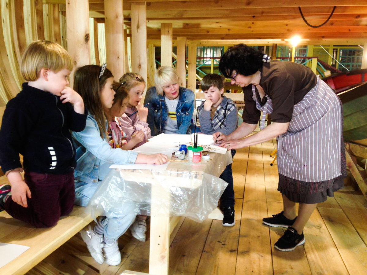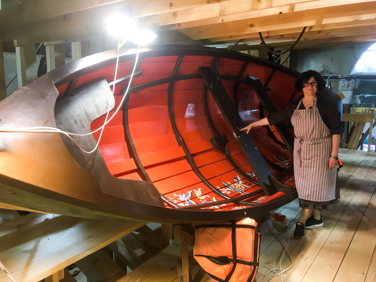 Стартовал мастер-класс «С туеска на лодку» в рамках проекта «Топорное дело». Художница Наталья Горн начала расписывать наш флагманский карбас, пришли первые гости и корреспондент Полина Забродина из газеты «Архангельск».