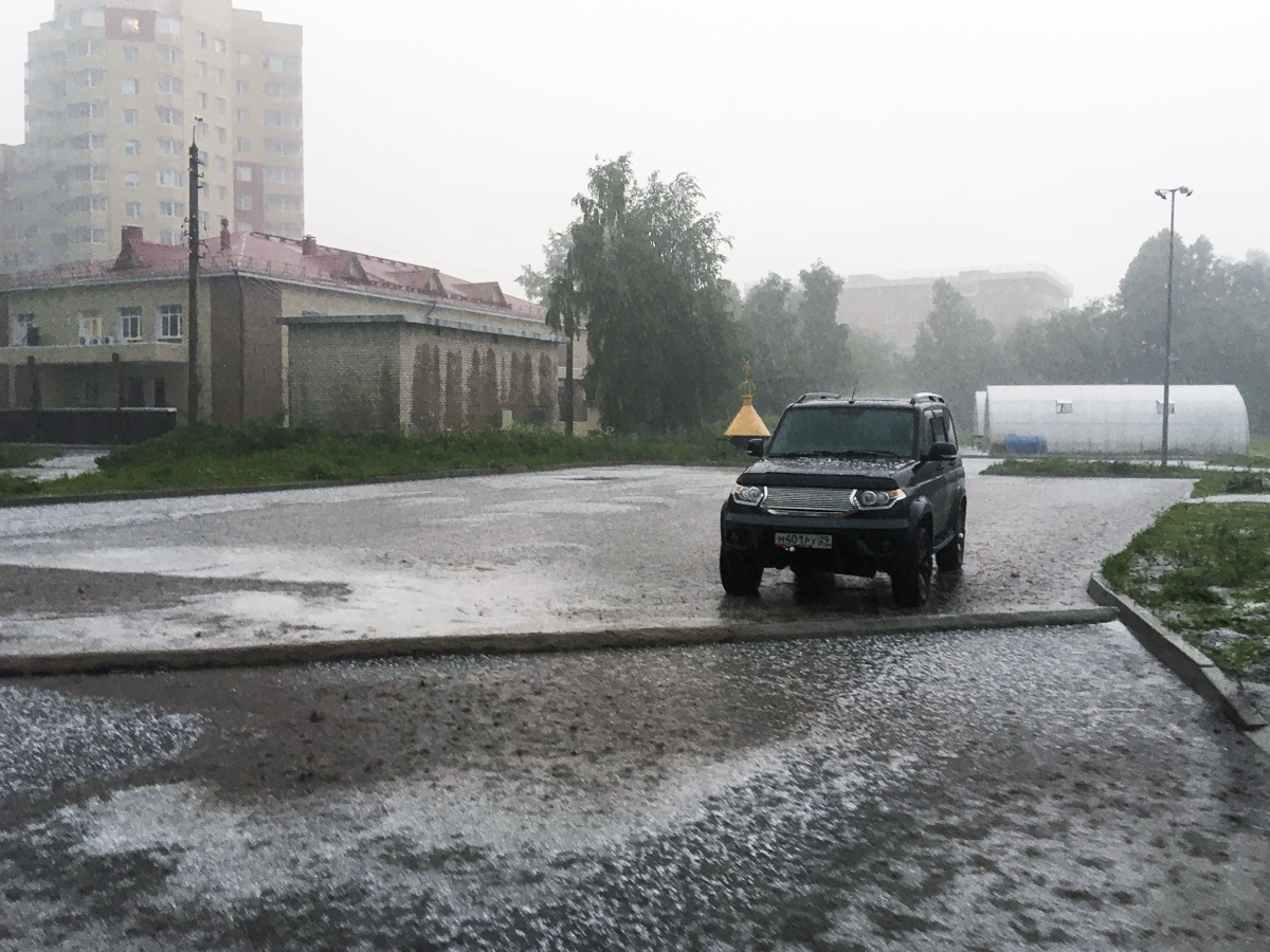 Вечером случилось настоящее наводнение: невиданного размаха ливень с градом и ветром.