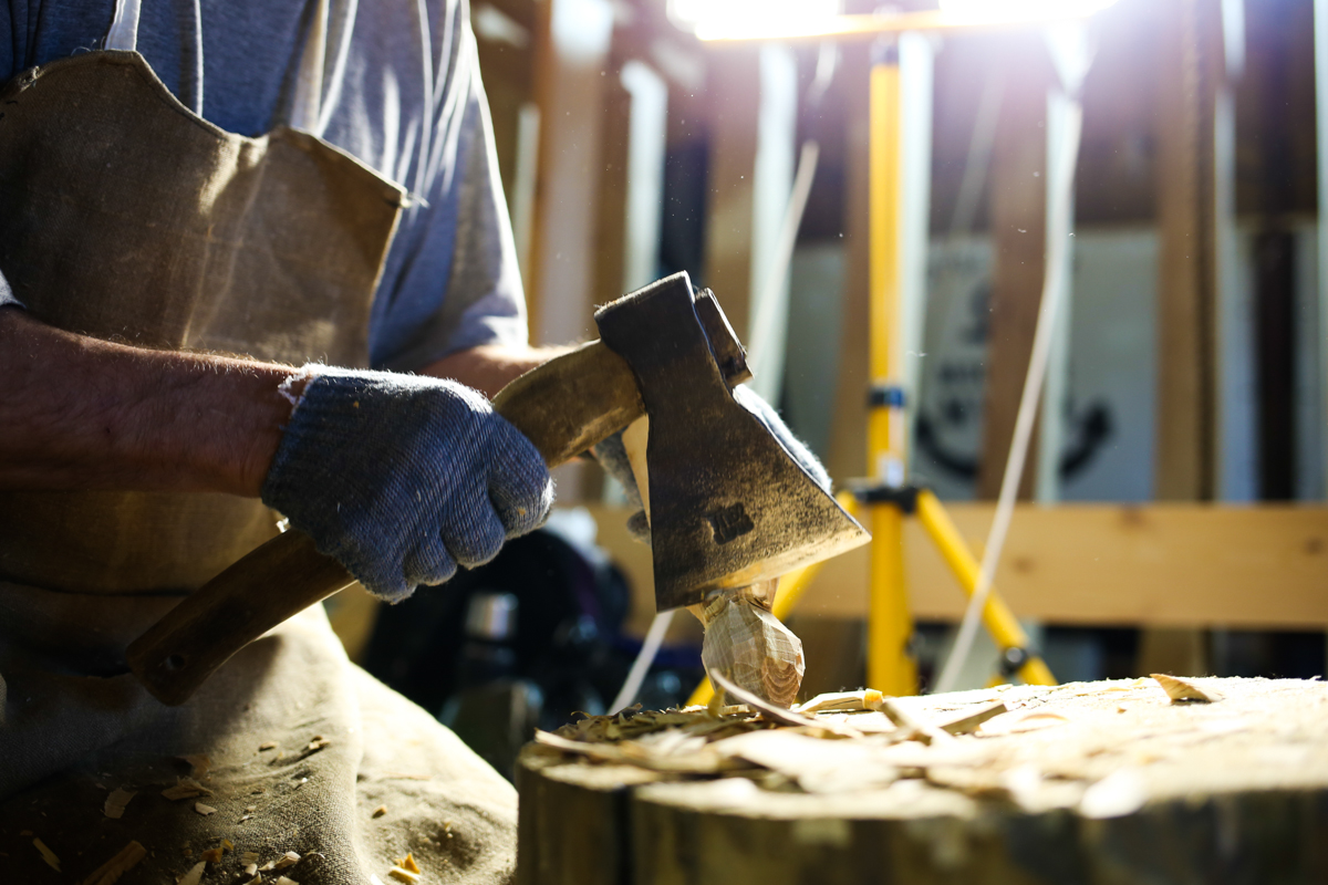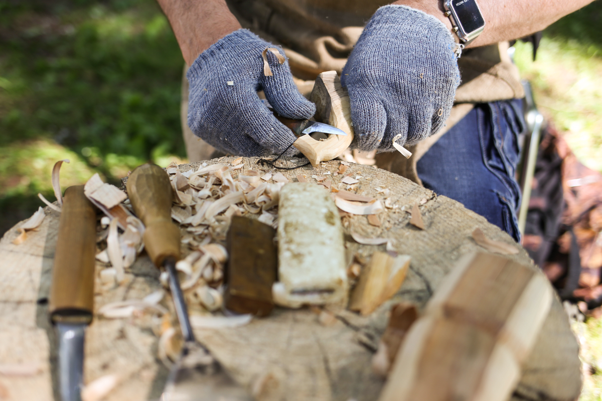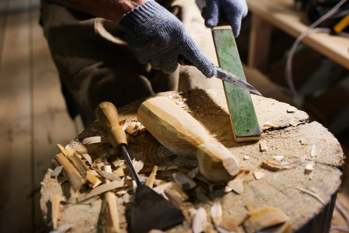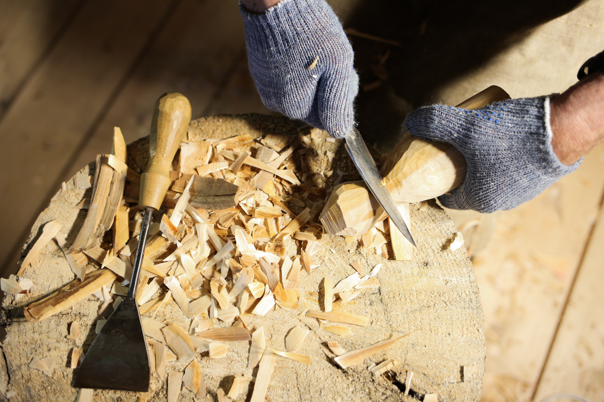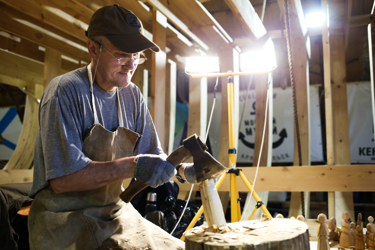 Резчик Геннадий начал проводить мастер-класс по деревянной игрушке в рамках гранта «Топорное дело».
