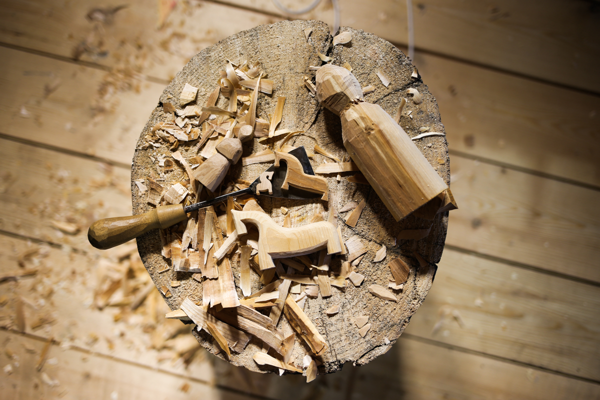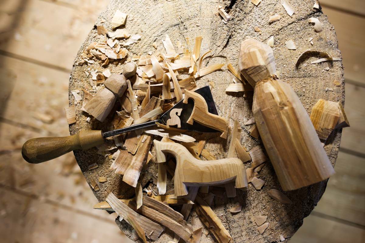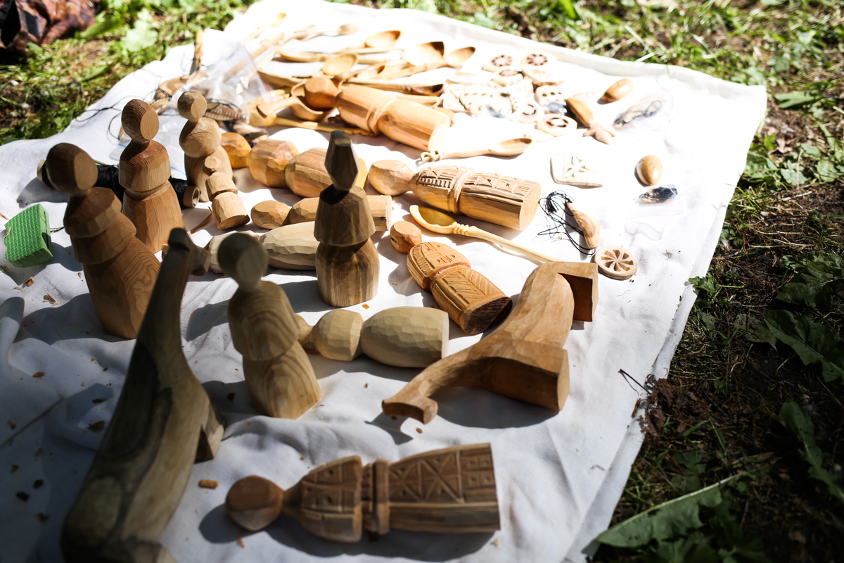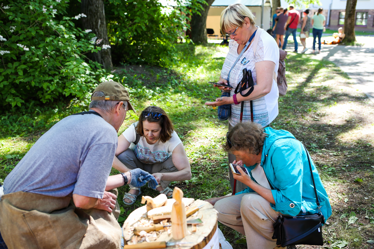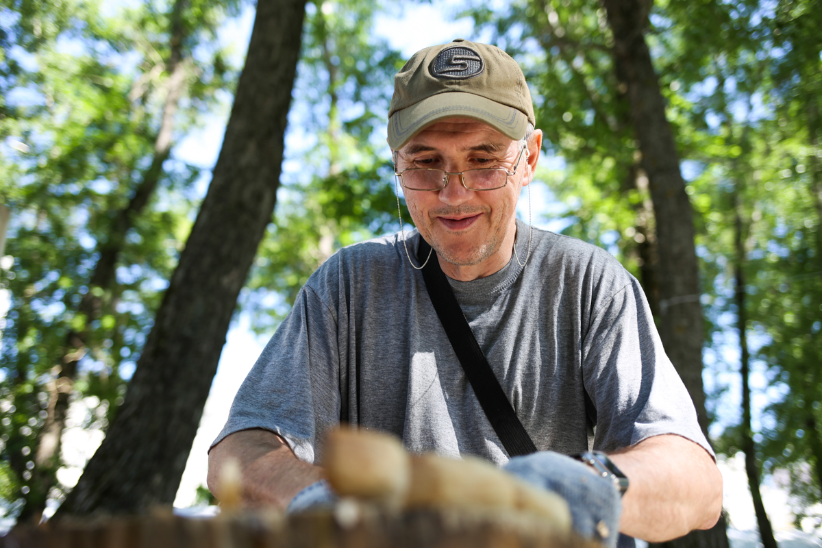 Геннадий вырезает игрушки и обучает этому всех желающих. Катя снимает.