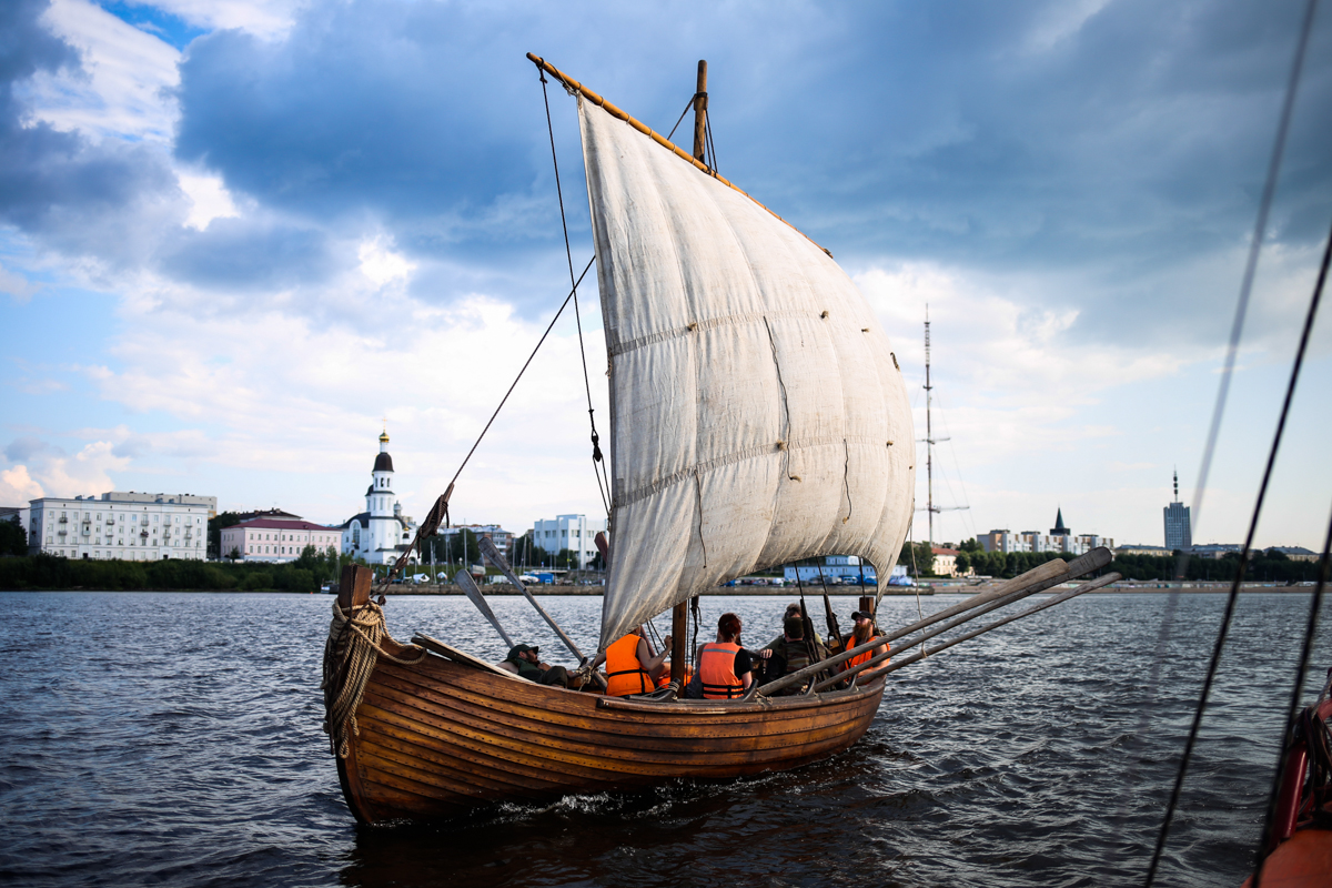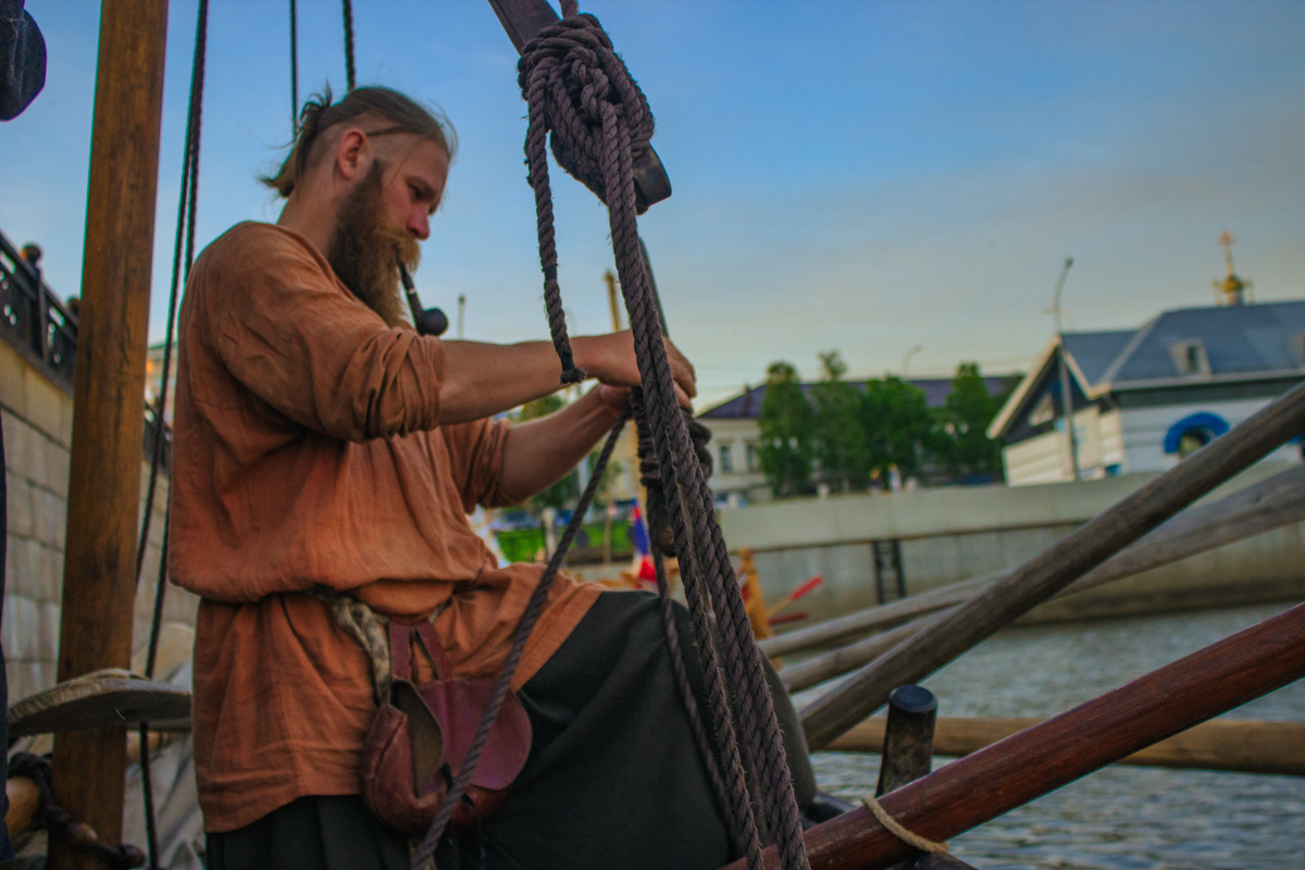 В рубрике #ПортретыВерфи мы рассказываем об участниках нашего проекта и гостях «Поморской шхуны» – мастерах, волонтерах, путешественниках и судостроителях. В июле к причалу на Красной пристани Архангельска пришвартовались две средневековые ладьи. На берег сошли варяги с трубками, в кафтанах и босиком, и разумеется, направились на верфь. Варяги оказались историческими реконструкторами из Сыктывкара и Петрозаводска. Мы успели пообщаться с гостями, выйти в море на лодке VII века и взять интервью у Константина Казакова – капитана ладьи «Варыш».