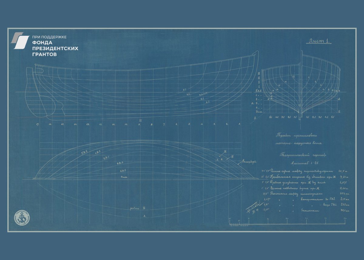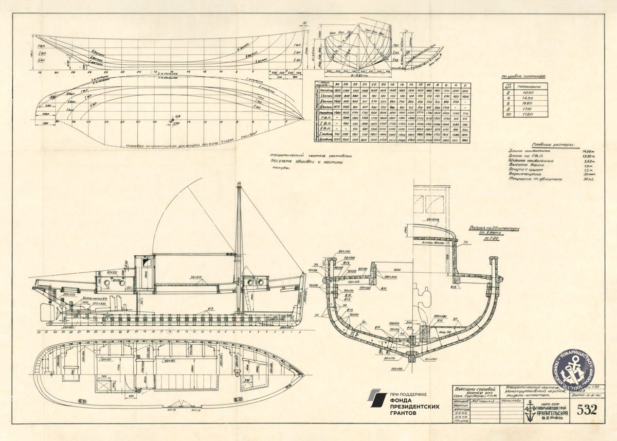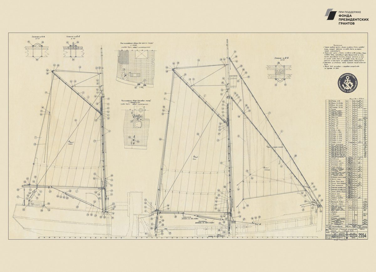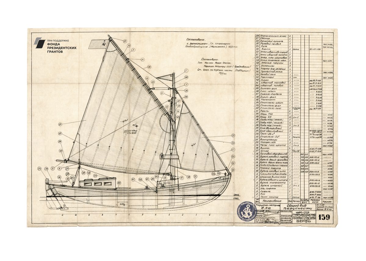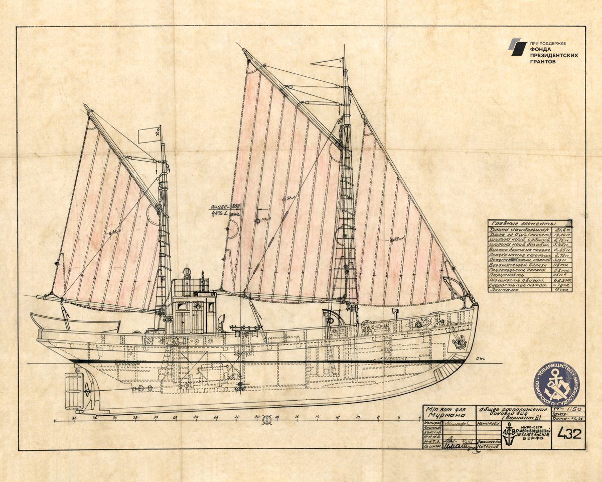 Парусное грузовое судно, общий видРулевая машинка, общий вид. Синий.Мото-бот Красин, чертеж парусов и общийПромысловый моторно-парусный бот, теоретический чертежПарусно-моторная ёла, закладка киля, вариант основной, 1944 годМото-бот Красин, чертеж парусов и общий. Красный.Рулевая машинка, общий вид. Белый.Моторно-парусное судно, чертеж парусностиКатер 50ЕНР, корпус. Синька.Парусное грузовое судно, общий видПарусное торговое судно, конструктивный чертеж корпусаЗверобойное судно типа «Смольный», теоретический чертежСуда №180-183, общий вид. 1928 год.Бот для Мурмана, конструктивный вариант корпуса.1957 год.Зверобойная шхуна, парусное устройство. Общий вид. 1954 год.ЗверобойнаяШхуна №1, «Сивуч». Информационные данные об остойчивости. 1952 год.Зверобойная шхуна, общее расположение, боковой вид. 1952 год.Зверобойная шхуна, моторное отделение. Общее расположение механизмов сечения. 1951 год.Разъездное судно. Водяное отопление, схема. 1950 год..Дори 88м. Судовой двигатель, продольный разрез. 1950 год.Бот для «Мурмана». Рангоут, такелаж, парусность. Общий вид. 1948 год.Прогулочный катер ПКС11. Конструктивный чертеж. 1958 год.Зверобойная шхуна №2. Ледовая оковка носа. 1952 год.МТР Штурвал. Диаметр 650 мм. Общий вид, детали. 1950 год.Зверобойная шхуна для Северного бассейна. Закладка киля, 1950 год.Дори 8 метров. Общее расположение. 1948 год.Моторный катер. Конструктивный чертеж. 1945 год.Буксирно-грузовой катер. Теоретический чертеж, конструктивный чертеж, мидель-шпангоут. 1946 год.Кунгас. Общий вид, детали. 1945 год.Кунгас грузоподъемностью 20 тонн. Конструктивный чертеж. 1946 год.Моторно-парусный бот для Мурмана. Общее расположение, боковой вид. 1945 год.Бот для Мурмана.Парусно-моторная ёла. Общий вид парусности, 1943 год.Промысловый карбас, Баренцево море. Конструктивный чертеж. 1943 год.Моторно-парусный бот для Мурмана. Общее расположение, боковой вид, план палубы, план трюма. 1945 год.Мото-бот Красин, чертеж парусов и общий. Голубой.Мото-бот Красин, чертеж парусов и общий. Желтый.