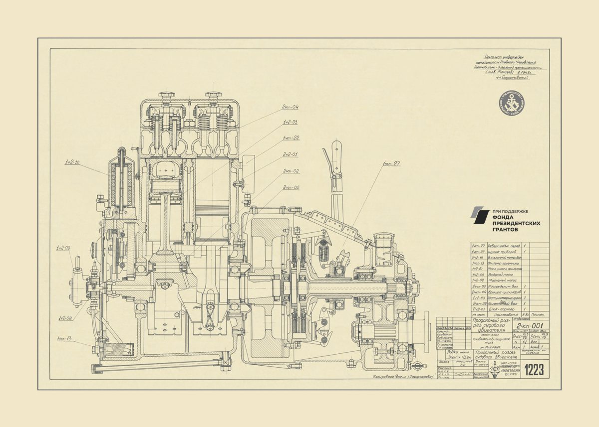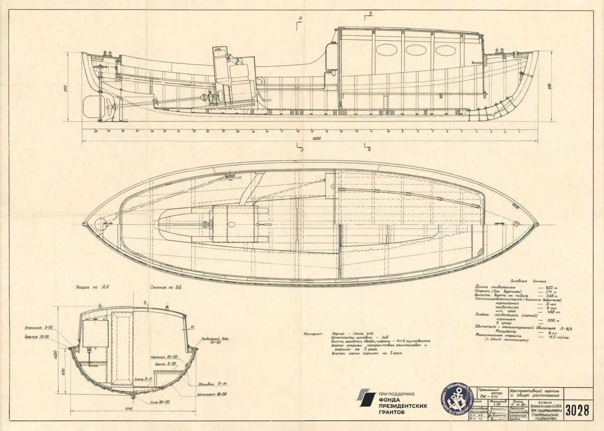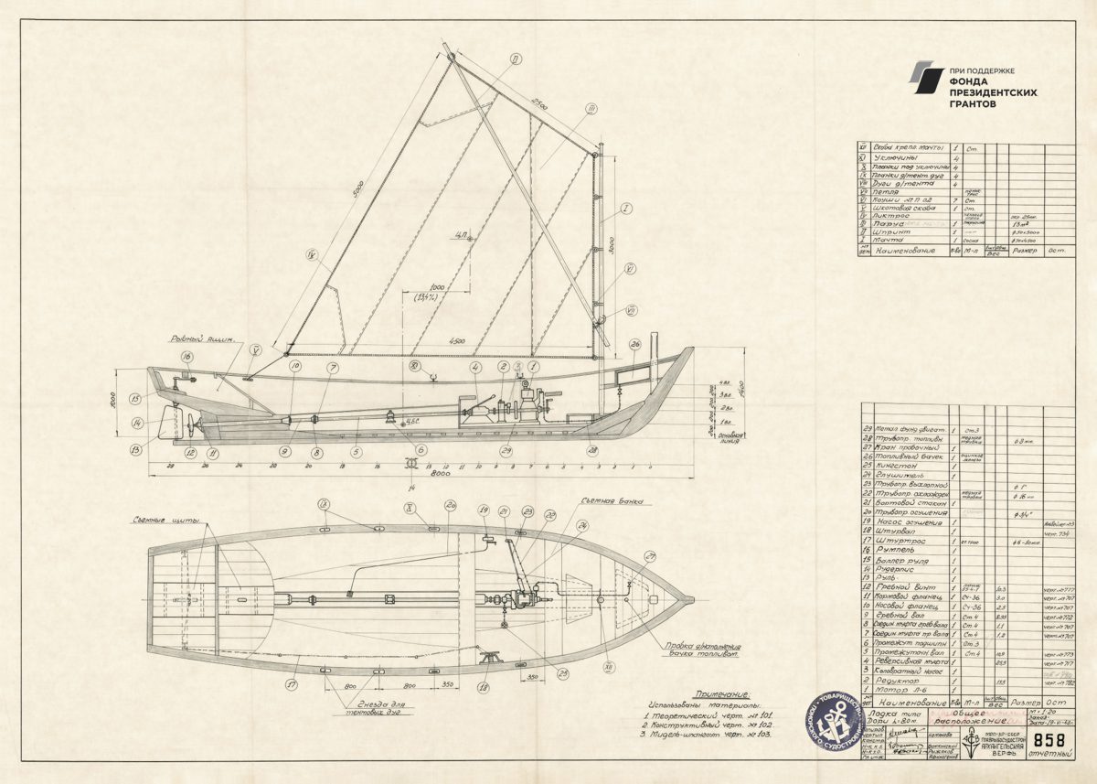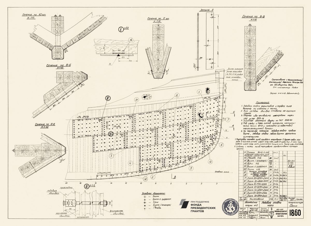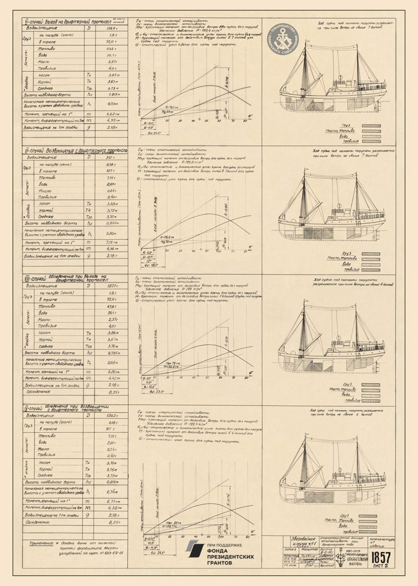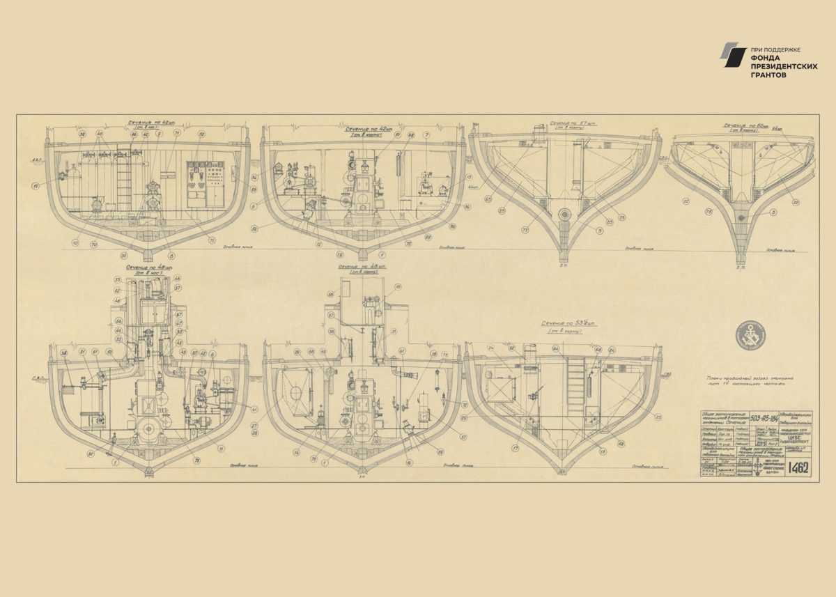 Парусное грузовое судно, общий видРулевая машинка, общий вид. Синий.Мото-бот Красин, чертеж парусов и общийПромысловый моторно-парусный бот, теоретический чертежПарусно-моторная ёла, закладка киля, вариант основной, 1944 годМото-бот Красин, чертеж парусов и общий. Красный.Рулевая машинка, общий вид. Белый.Моторно-парусное судно, чертеж парусностиКатер 50ЕНР, корпус. Синька.Парусное грузовое судно, общий видПарусное торговое судно, конструктивный чертеж корпусаЗверобойное судно типа «Смольный», теоретический чертежСуда №180-183, общий вид. 1928 год.Бот для Мурмана, конструктивный вариант корпуса.1957 год.Зверобойная шхуна, парусное устройство. Общий вид. 1954 год.ЗверобойнаяШхуна №1, «Сивуч». Информационные данные об остойчивости. 1952 год.Зверобойная шхуна, общее расположение, боковой вид. 1952 год.Зверобойная шхуна, моторное отделение. Общее расположение механизмов сечения. 1951 год.Разъездное судно. Водяное отопление, схема. 1950 год..Дори 88м. Судовой двигатель, продольный разрез. 1950 год.Бот для «Мурмана». Рангоут, такелаж, парусность. Общий вид. 1948 год.Прогулочный катер ПКС11. Конструктивный чертеж. 1958 год.Зверобойная шхуна №2. Ледовая оковка носа. 1952 год.МТР Штурвал. Диаметр 650 мм. Общий вид, детали. 1950 год.Зверобойная шхуна для Северного бассейна. Закладка киля, 1950 год.Дори 8 метров. Общее расположение. 1948 год.Моторный катер. Конструктивный чертеж. 1945 год.Буксирно-грузовой катер. Теоретический чертеж, конструктивный чертеж, мидель-шпангоут. 1946 год.Кунгас. Общий вид, детали. 1945 год.Кунгас грузоподъемностью 20 тонн. Конструктивный чертеж. 1946 год.Моторно-парусный бот для Мурмана. Общее расположение, боковой вид. 1945 год.Бот для Мурмана.Парусно-моторная ёла. Общий вид парусности, 1943 год.Промысловый карбас, Баренцево море. Конструктивный чертеж. 1943 год.Моторно-парусный бот для Мурмана. Общее расположение, боковой вид, план палубы, план трюма. 1945 год.Мото-бот Красин, чертеж парусов и общий. Голубой.Мото-бот Красин, чертеж парусов и общий. Желтый.