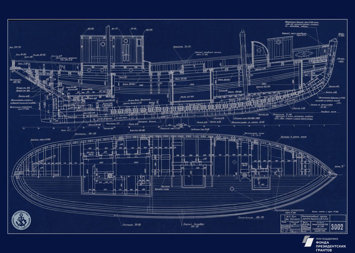 Cканирование чертежей Соломбальской судоверфи осуществляется при содействии компании IQTech.