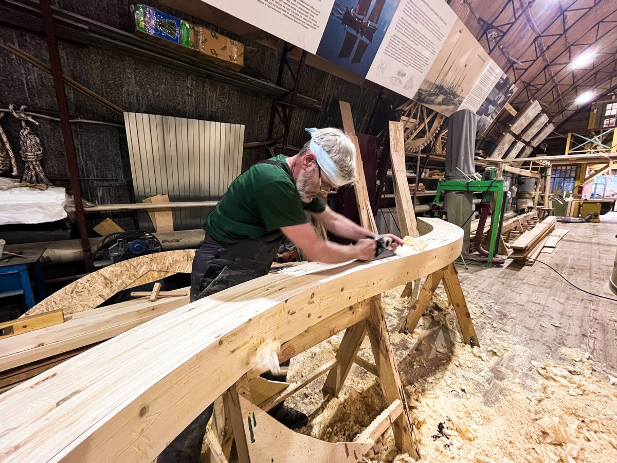 Игорь строгает девятый шпангоут. Есть надежда, что завтра мы его поставим.