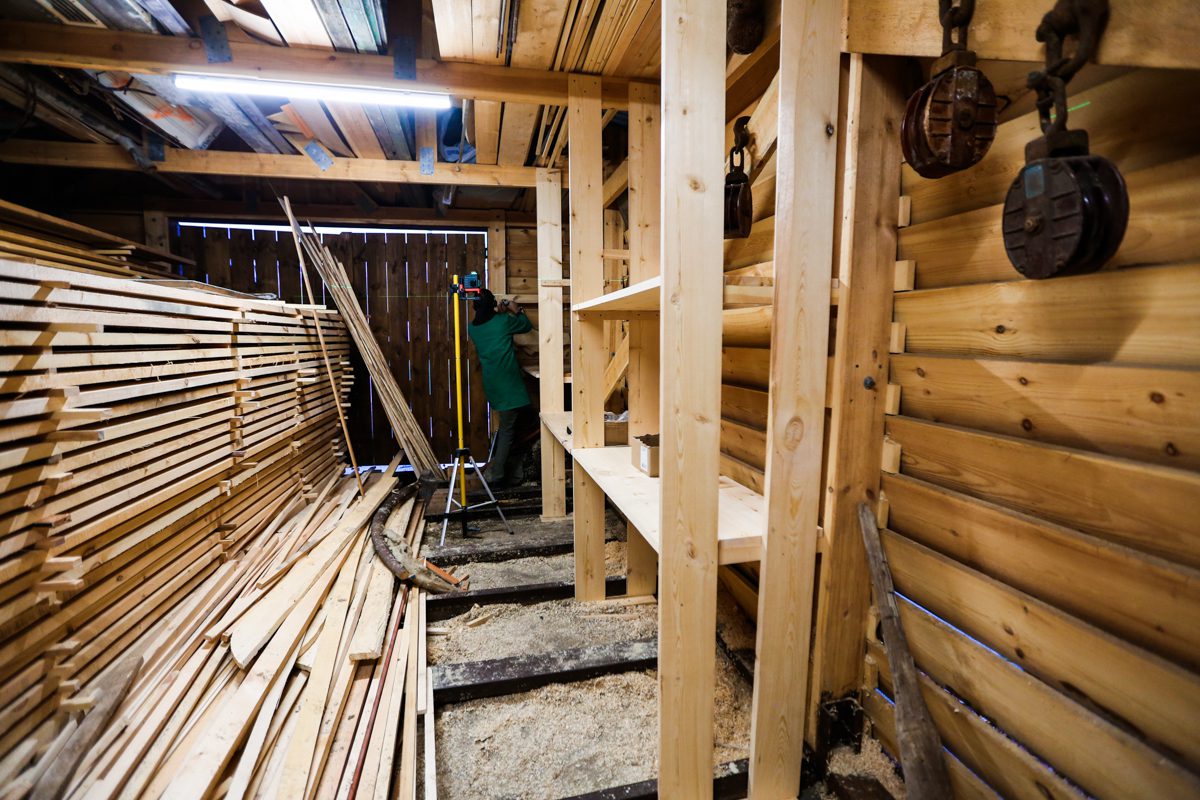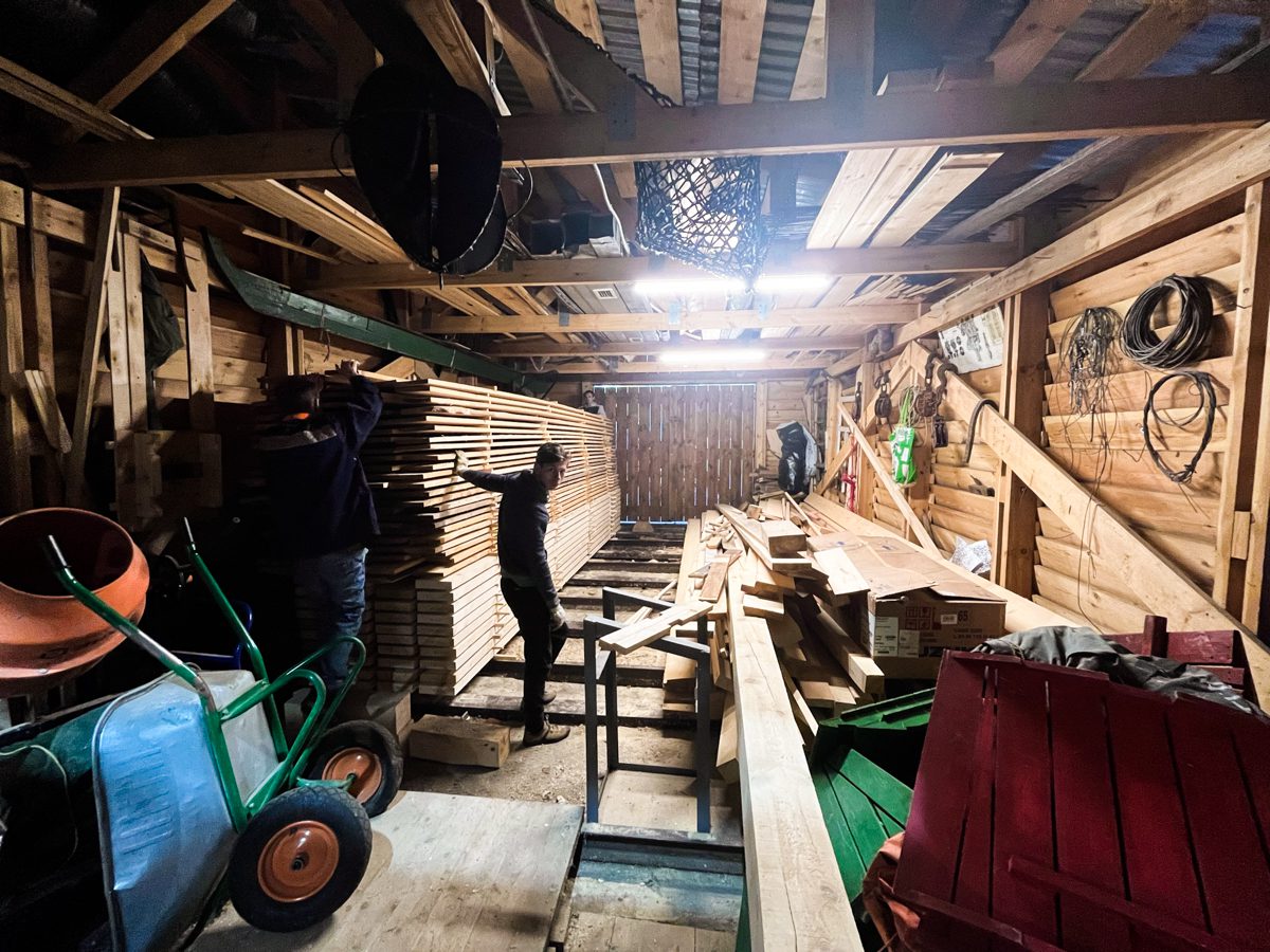 Трое молодцев-студентов продолжают упорядочивать доски в сушилке.