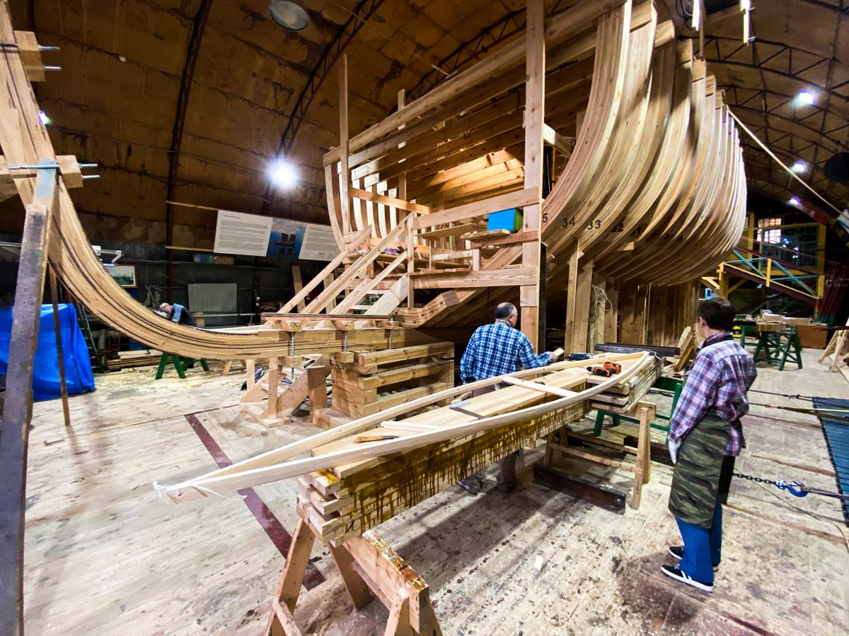 Кстати, накануне ночью заклеили тимберсы восьмого шпангоута. Ко Дню рождения верфи хотим значительно прирастить шхуну, так что работаем, считай, в две смены.