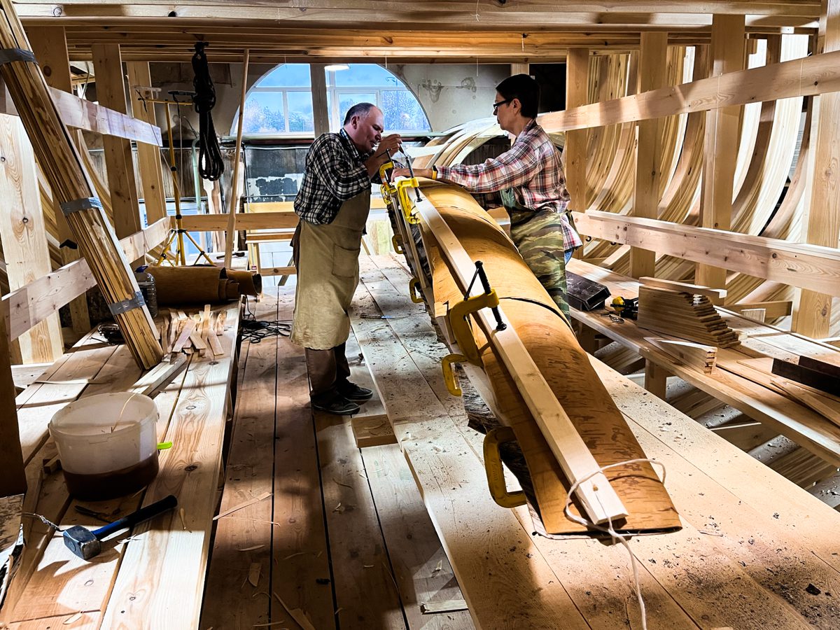 За выходные на верфи прибавилась пара новых тимберсов шхуны – заклеили их Ибрагим, Баха и Нуркен.
