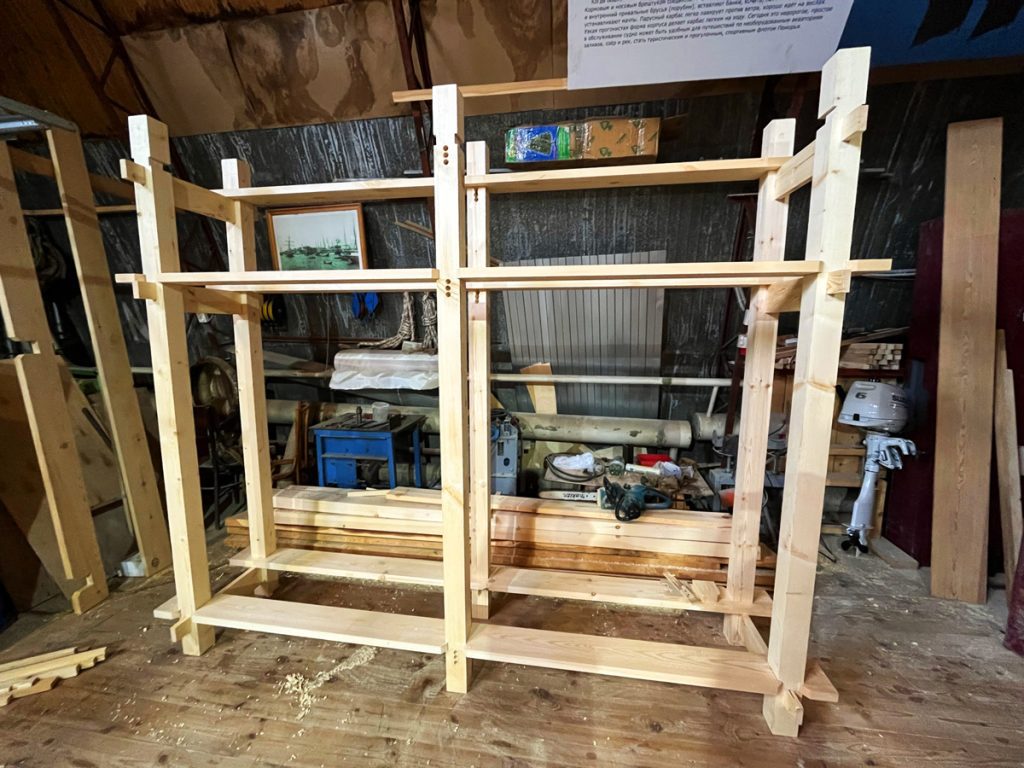 Миша все более ловко производит полки, стеллажи, шкафы и прочие конструкции для хранения.