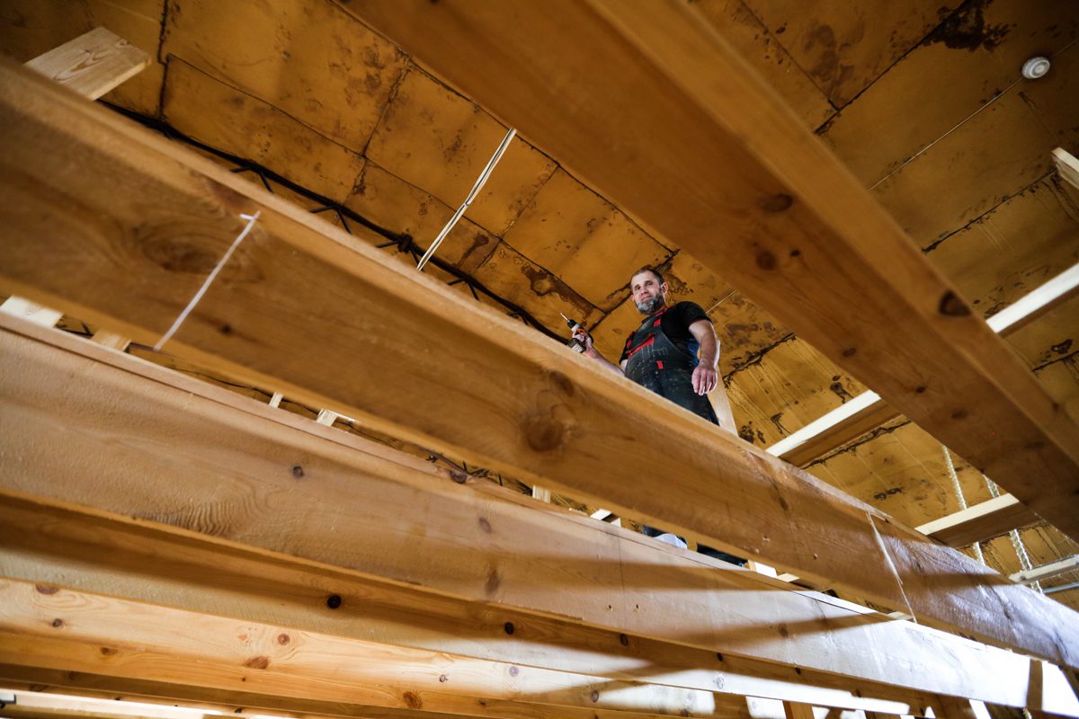 Игорь делает козлы для зимовки карбасов – предпоследний из них сегодня достали из воды.