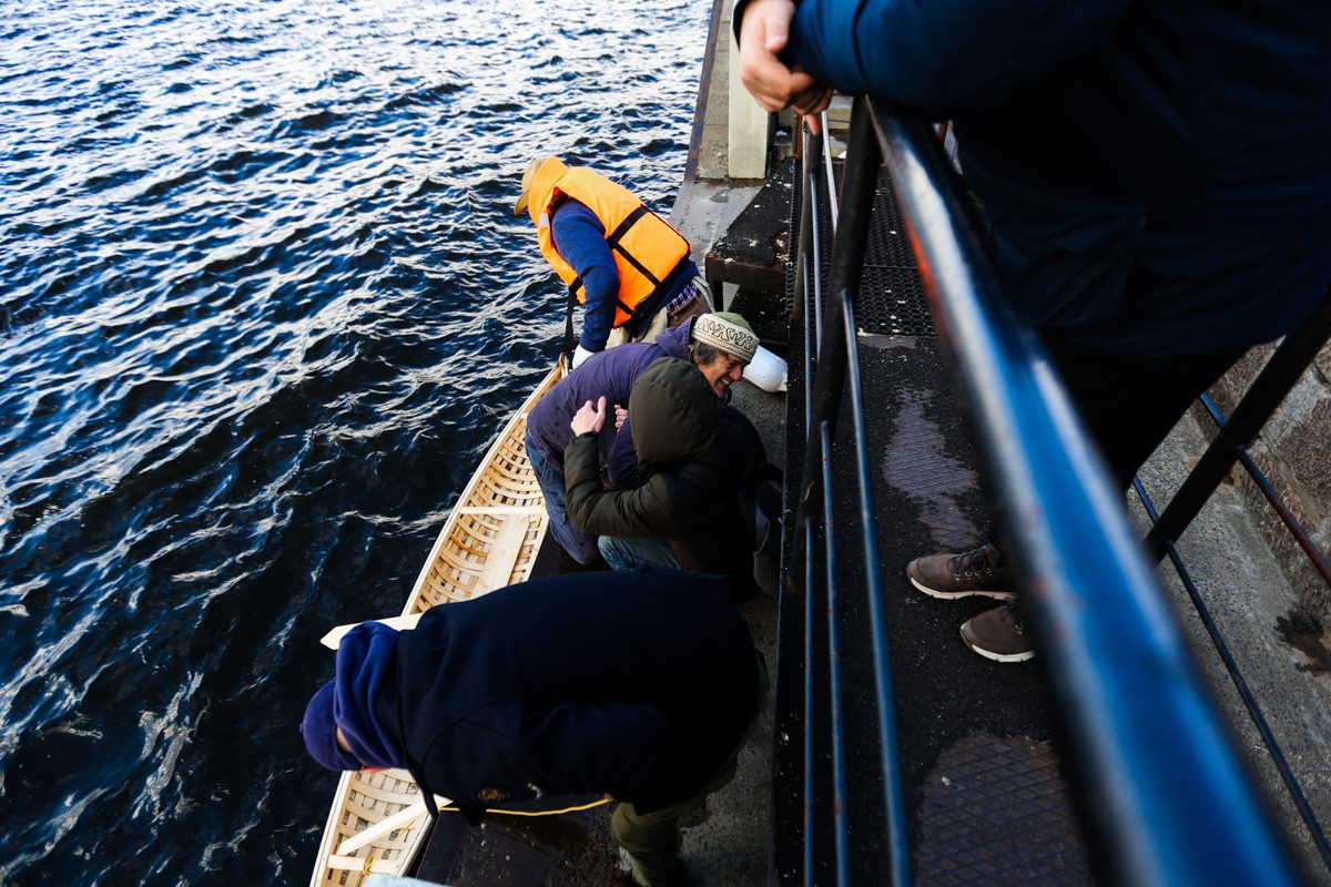Кроме мастера-родителя на лодке побывали: наш капитан Женя, смело скакнувший в лодку с высоты музейного причала на Красной пристани, байдарочник Александр Дмитриев и столяр Александр Тормосов.