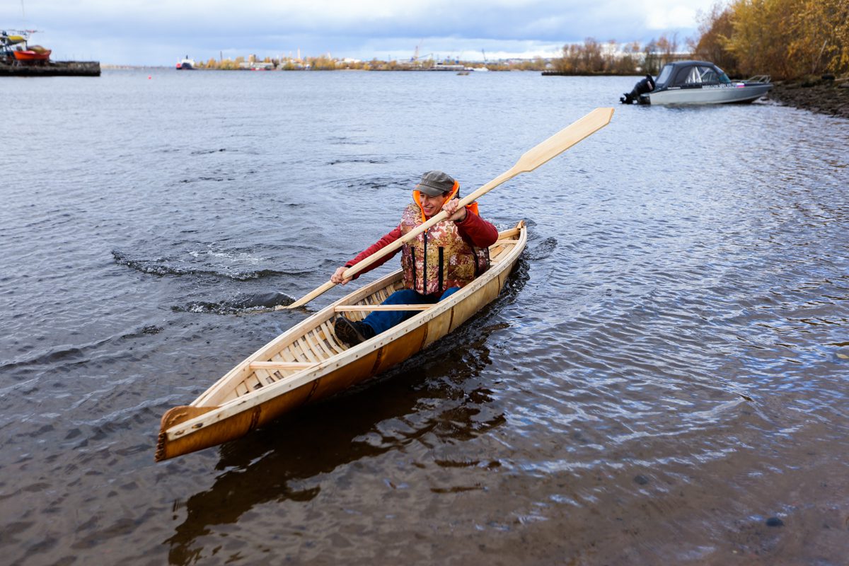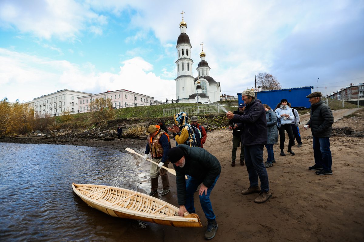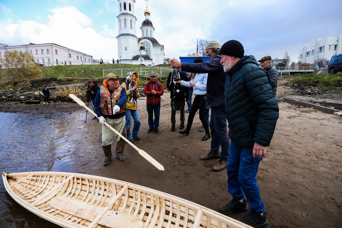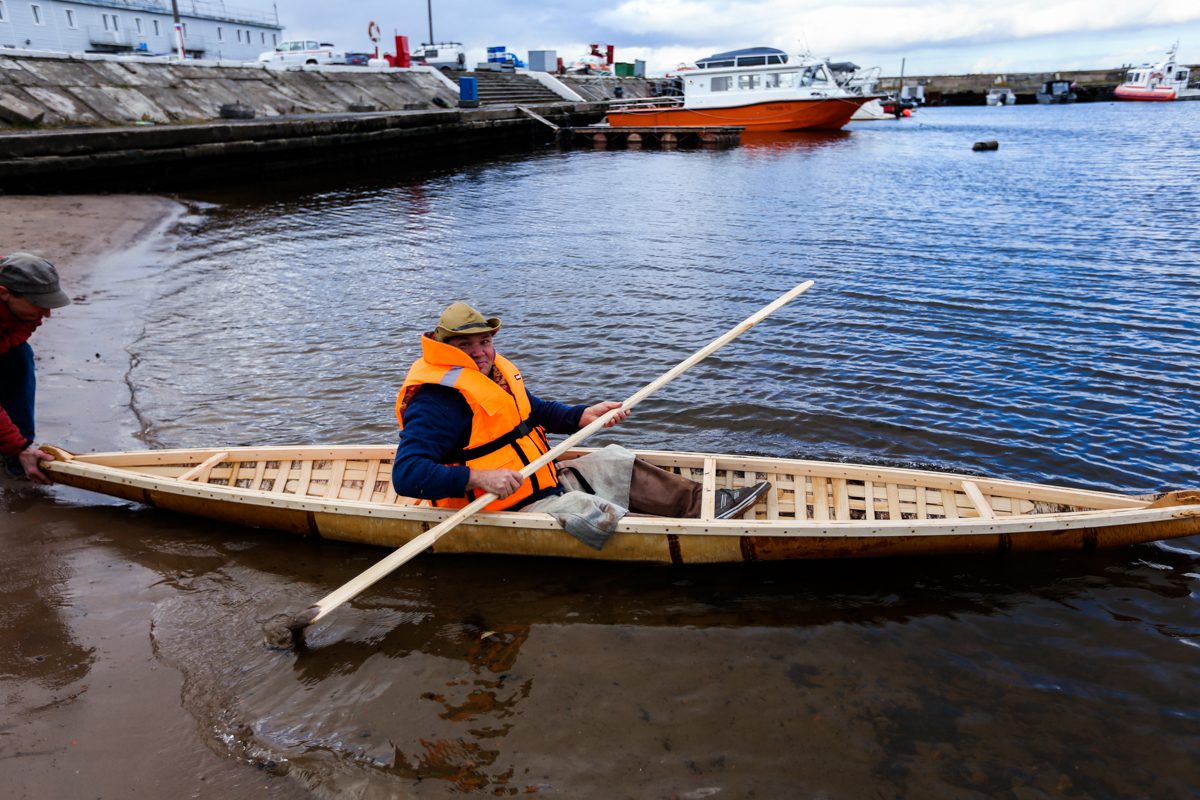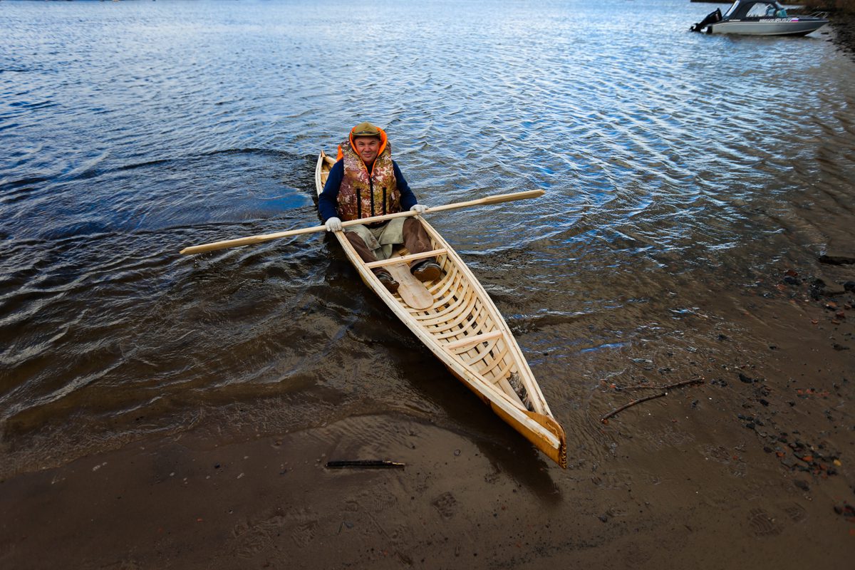 Спустили на воду лодку-берестянку, построенную мастером Александром Шутихиным.