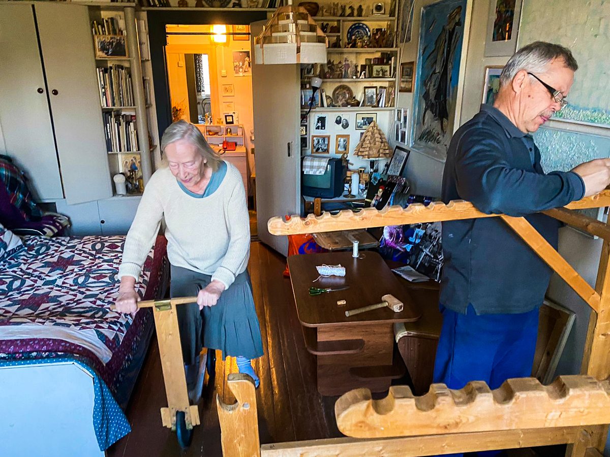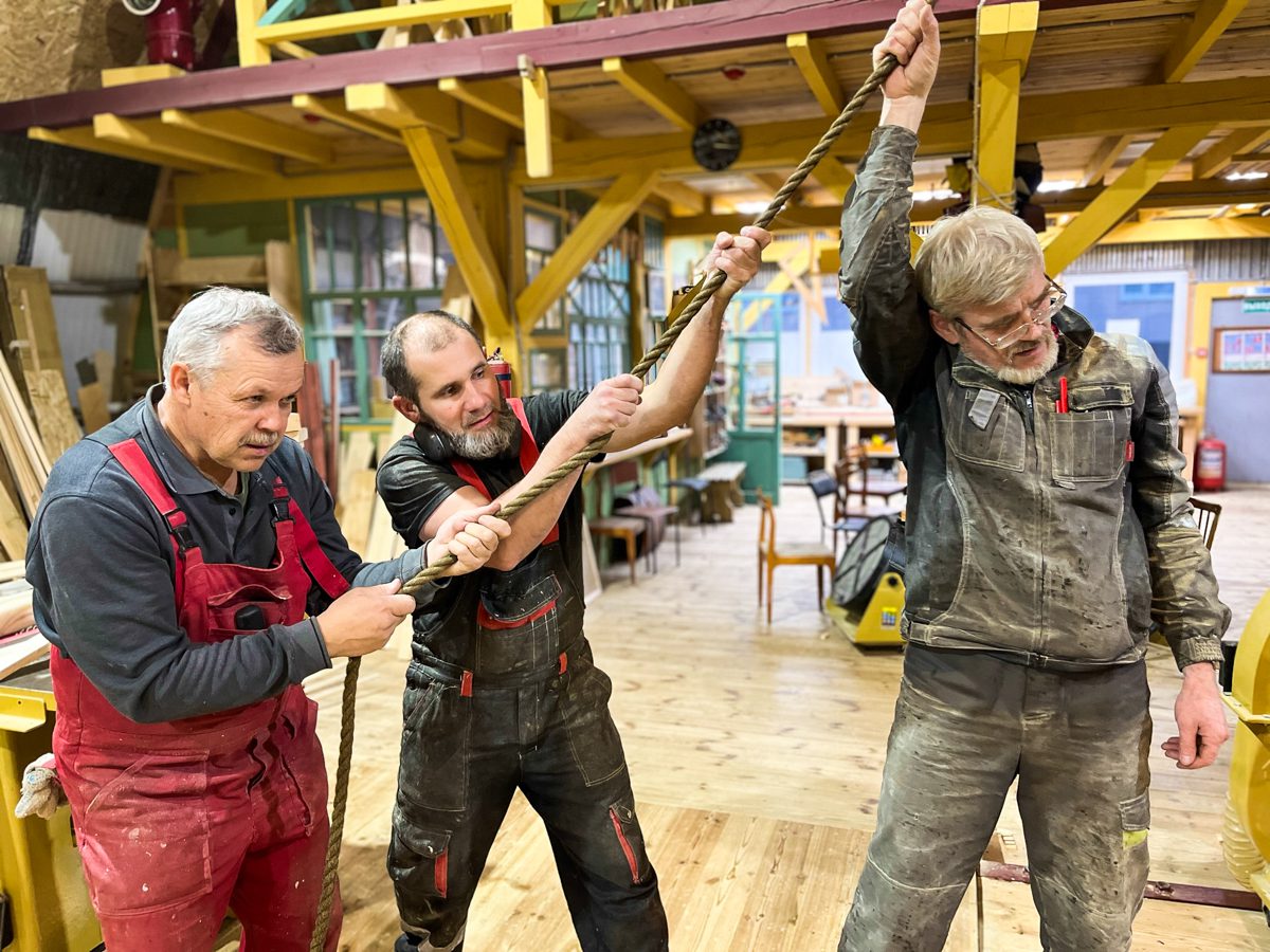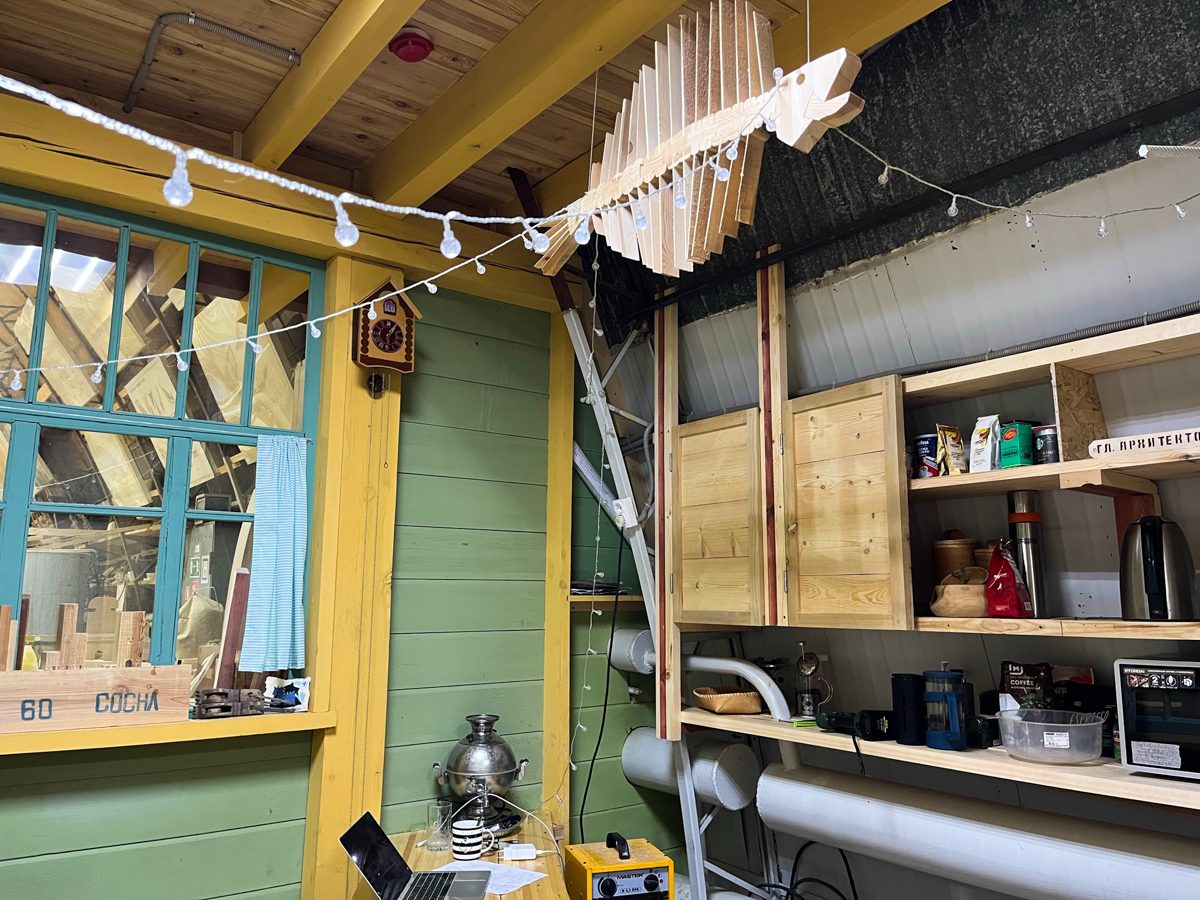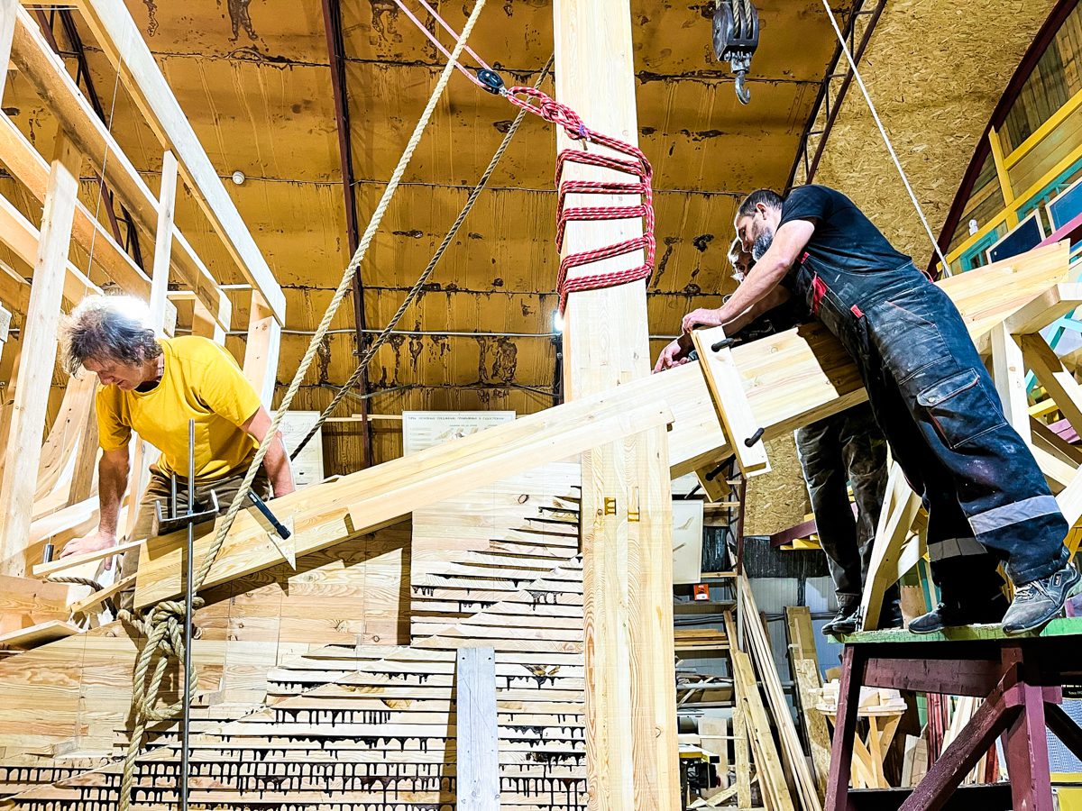 Днем Женя и Александр ездили в гости к Нине Анатольевне Филевой. Пили чай, любовались интерьерами. Разбирали и перевозили на верфь ее «красну» – ткацкий станок для нового мастер-класса в рамках проекта «Топорное дело». Сама Нина Анатольевна каталась по квартире на деревянном самокате и демонстрировала другие интересные штуки из своей коллекции предметов народного быта. Экспонаты, нужные для выставки «Народное ткачество», тоже перевезли на верфь.