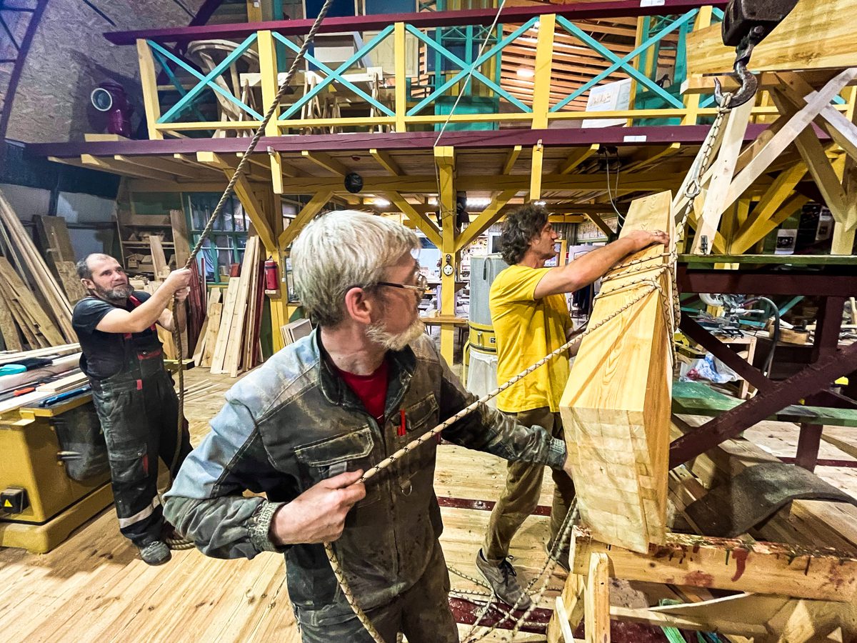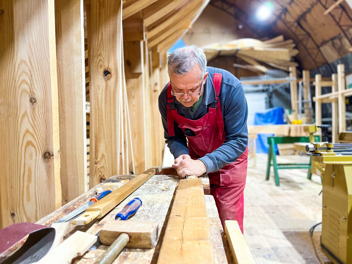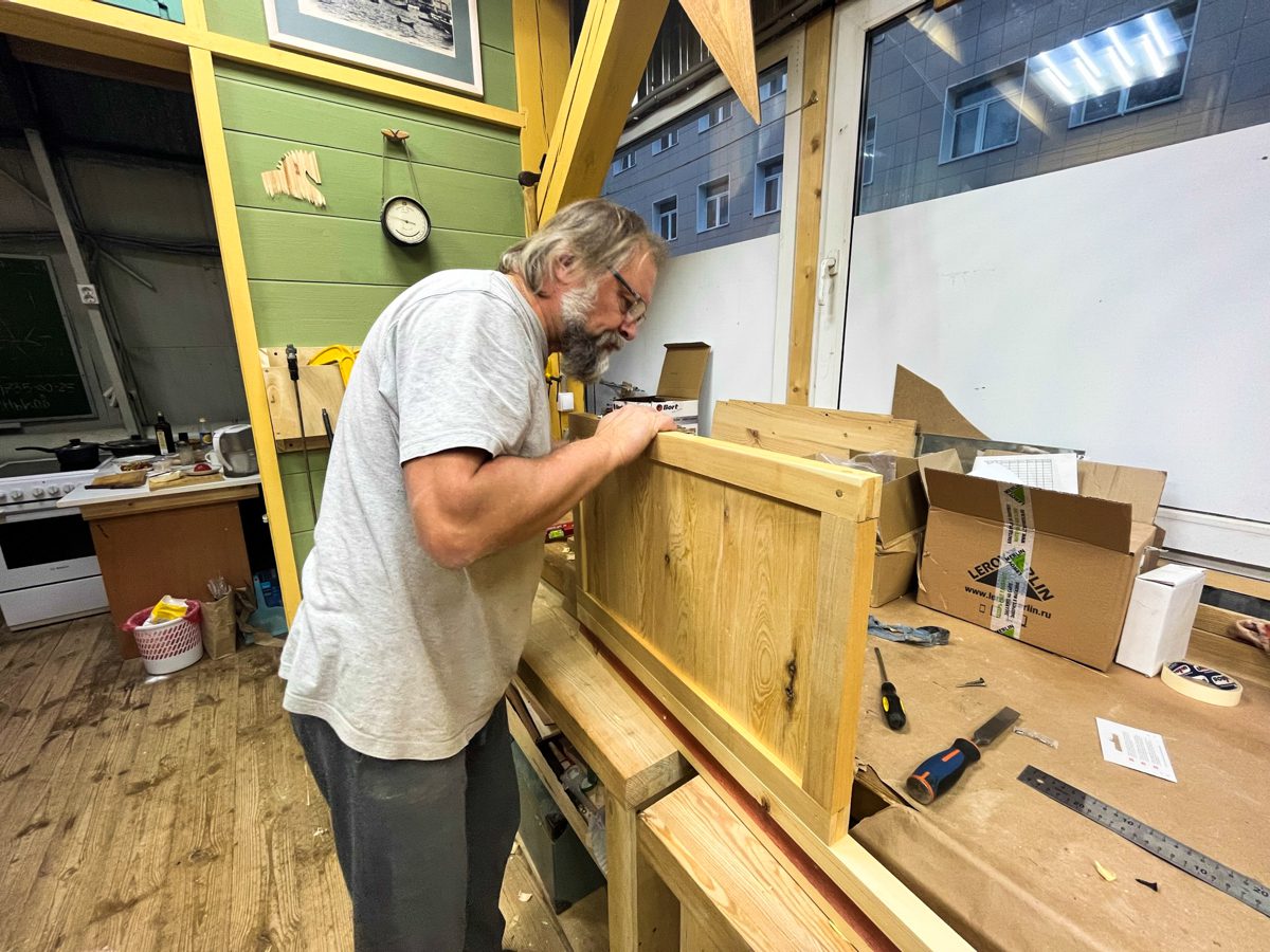В остальном: Игорь собирает горнтимберс, Артем строгает и подклеивает седьмой шпангоут шхуны, Александр возится с рубанком, у которого коротит ротор, а Саша Антонов продолжает благоукрашать свою заветную кухню, а именно – возводить в ней полки и фасады шкафов.