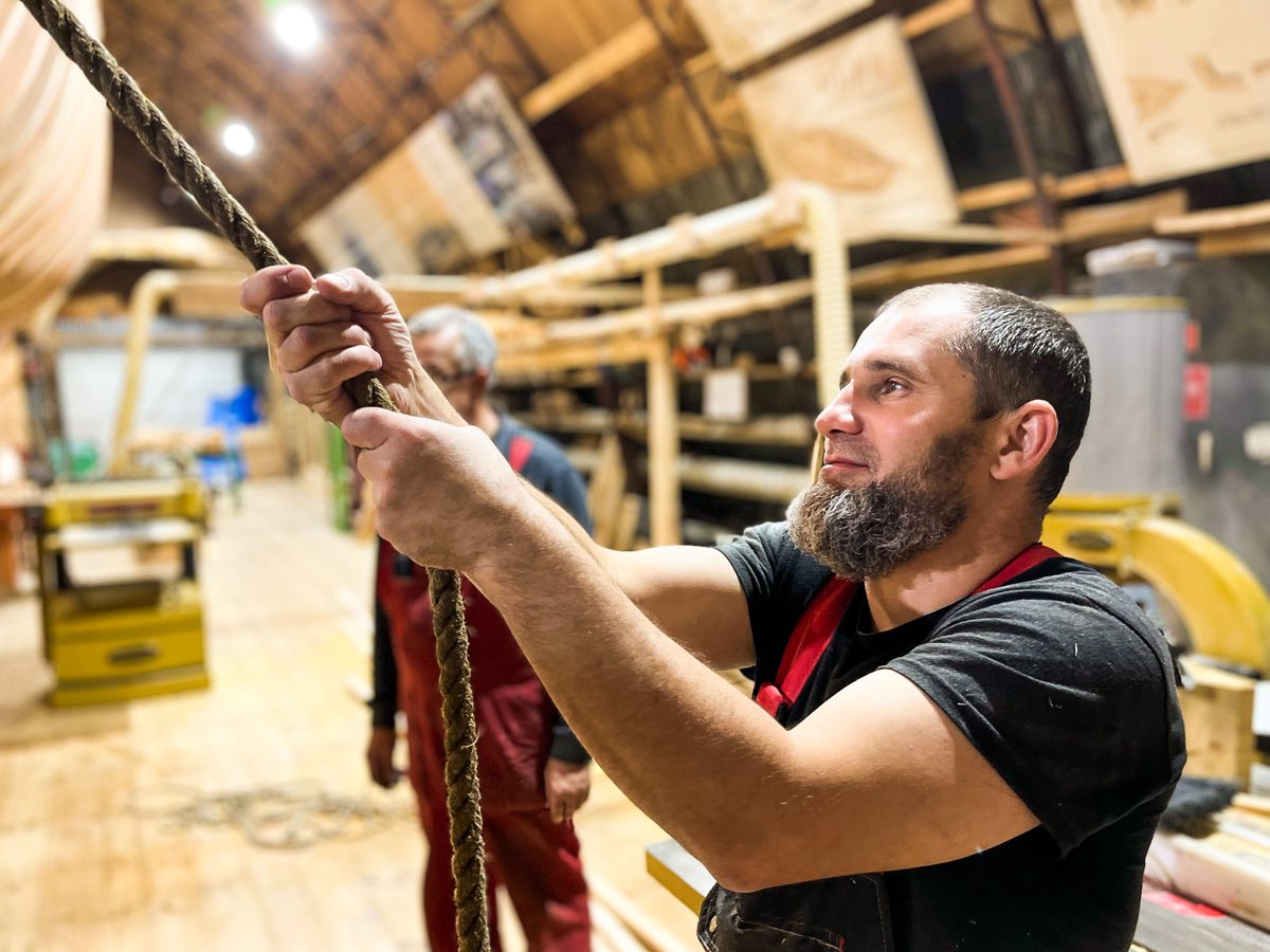На верфи продолжается мастер-класс «Ткём парус». Дело увлекательное.