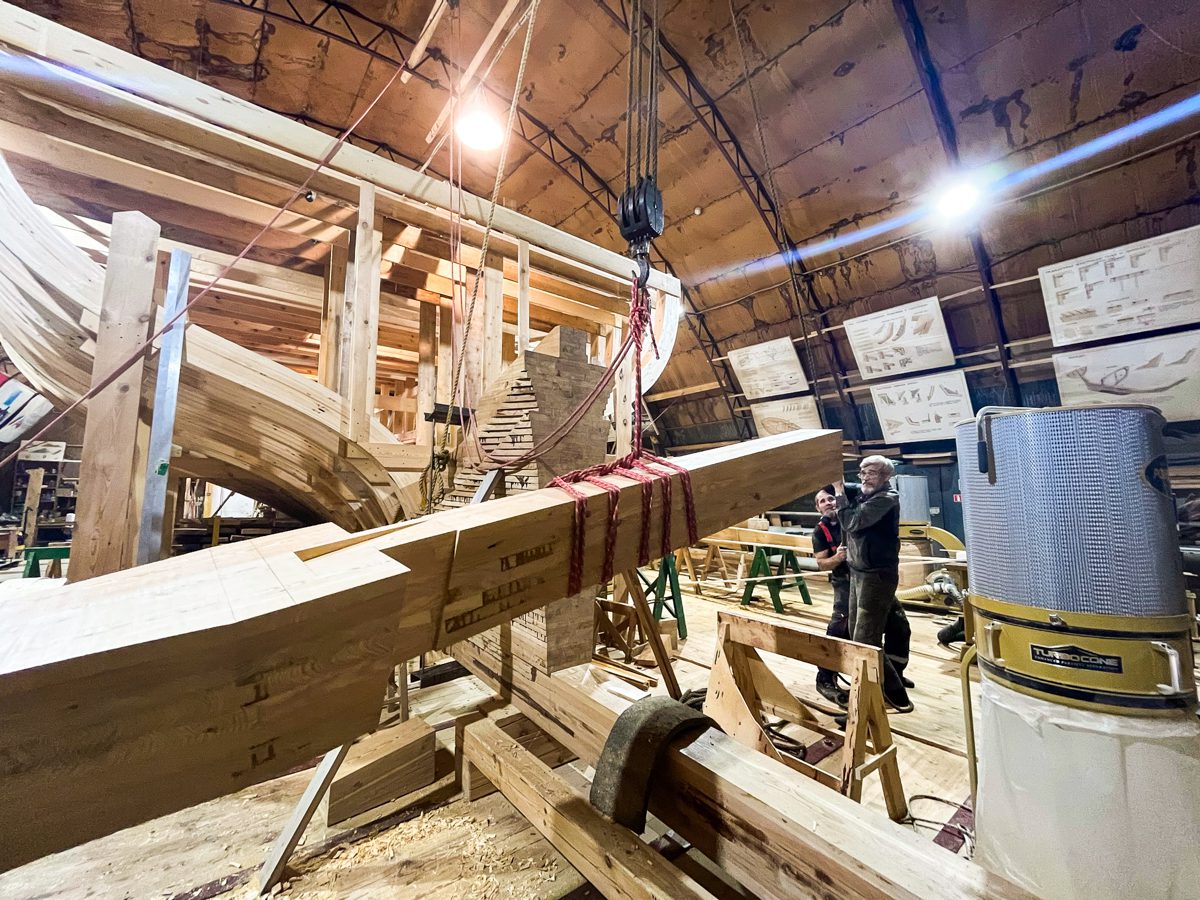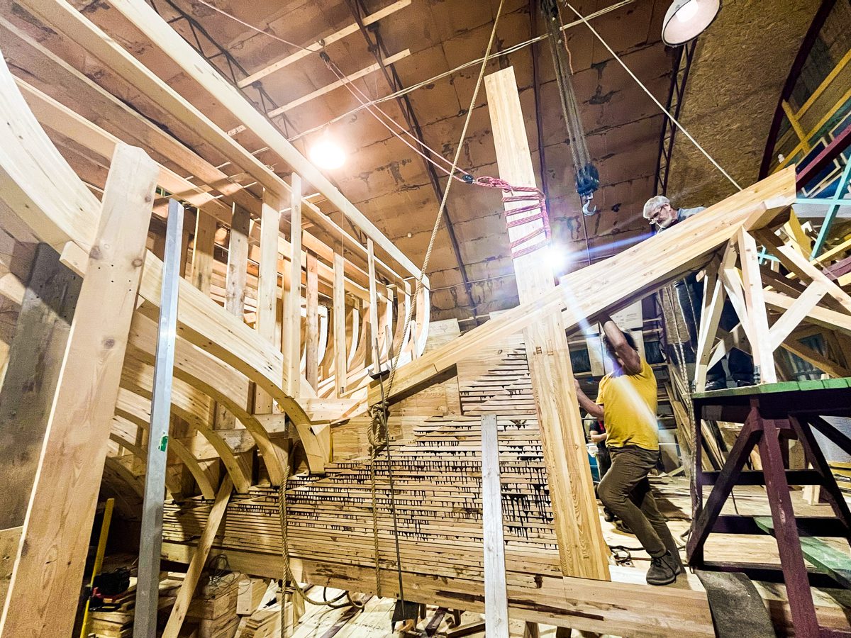 Катя так воспела процесс установки старнпоста с горнтимберсом и самоотверженный подвиг своих-коллег судостроителей, что ее фотоархивы теперь полны шедевров. Шедевров этих так много, что мы поделим их на пять галерей по одиннадцать кадров каждая. Вот они, прямо под этими словами. Листайте, чтобы увидеть все-все-все.