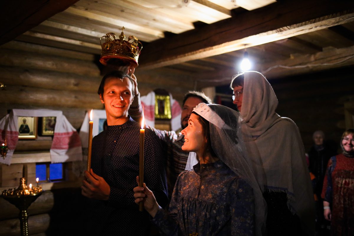 Пока мы ткем парус на верфи, Миша Крупенин и Даша Морозова соткали семью в деревне Архангело. Венчание прошло в храме под Каргополем, свадьбу гуляли с песнями и танцами. Отмечать продолжим на верфи, когда откомандированная в Каргополь часть команды во главе с молодоженами вернутся на верфь.