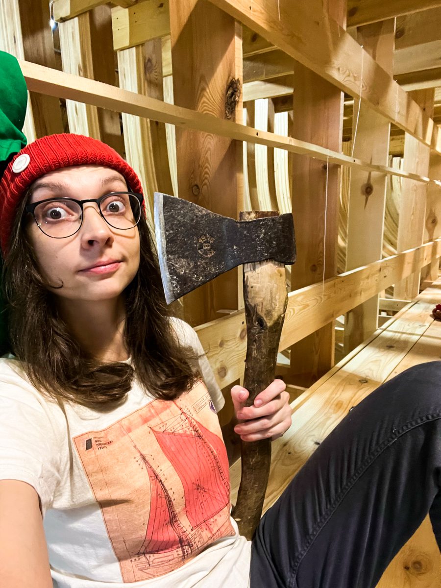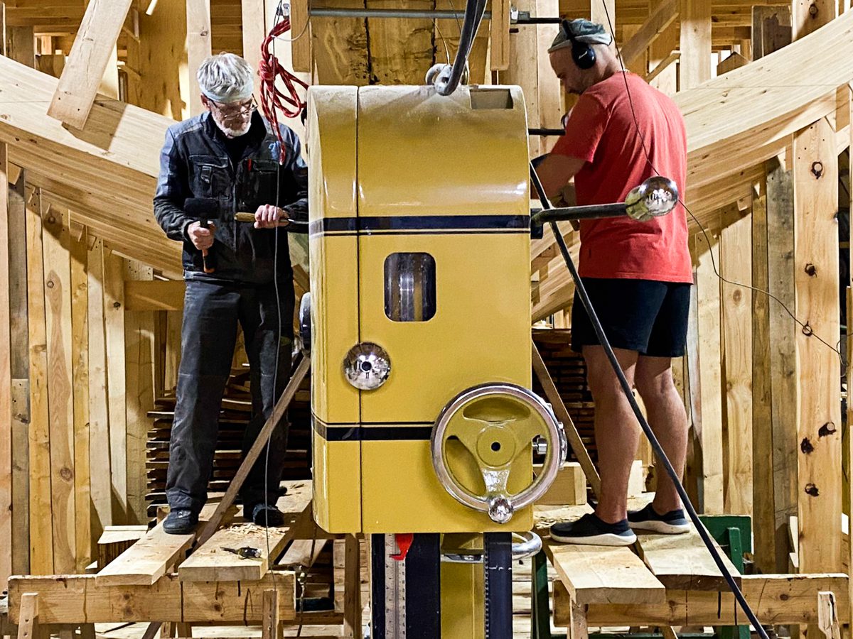 Заготовили вязы, подаренные нам дендрарием САФУ. Вязы – это полный шик, у нас в городе они вообще не растут. Из вязов сделаем штурвал шхуны.