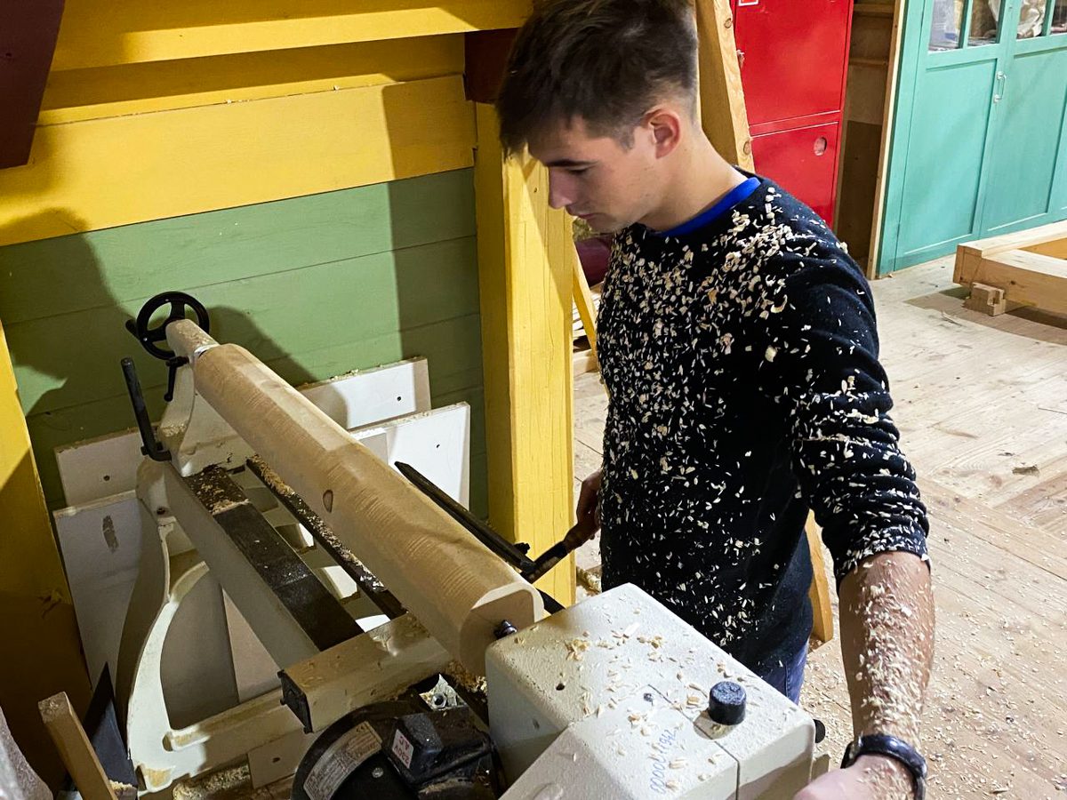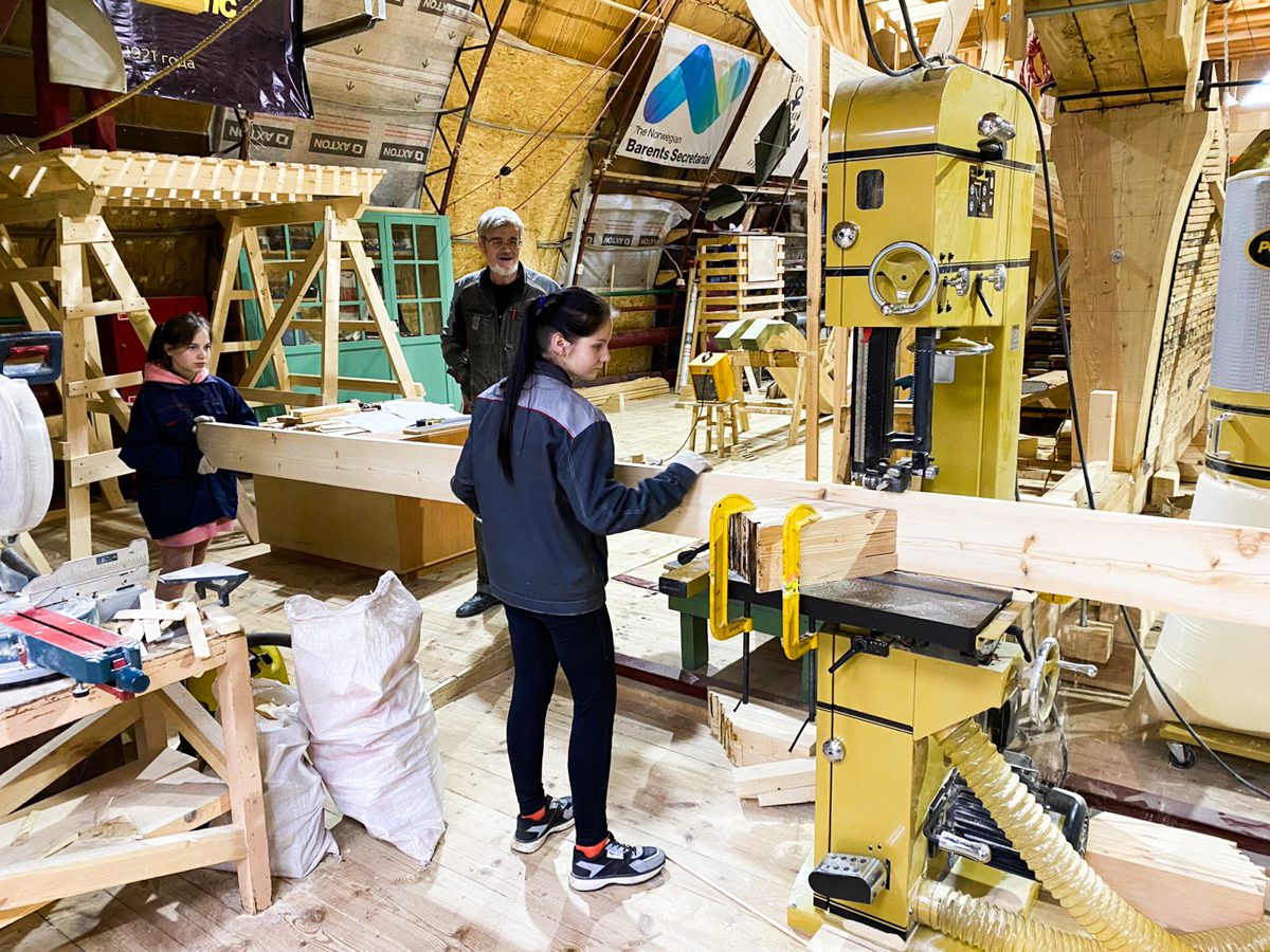 Кроме заклеивания тимберсов курсанты школы судостроения учатся ровно пилить.