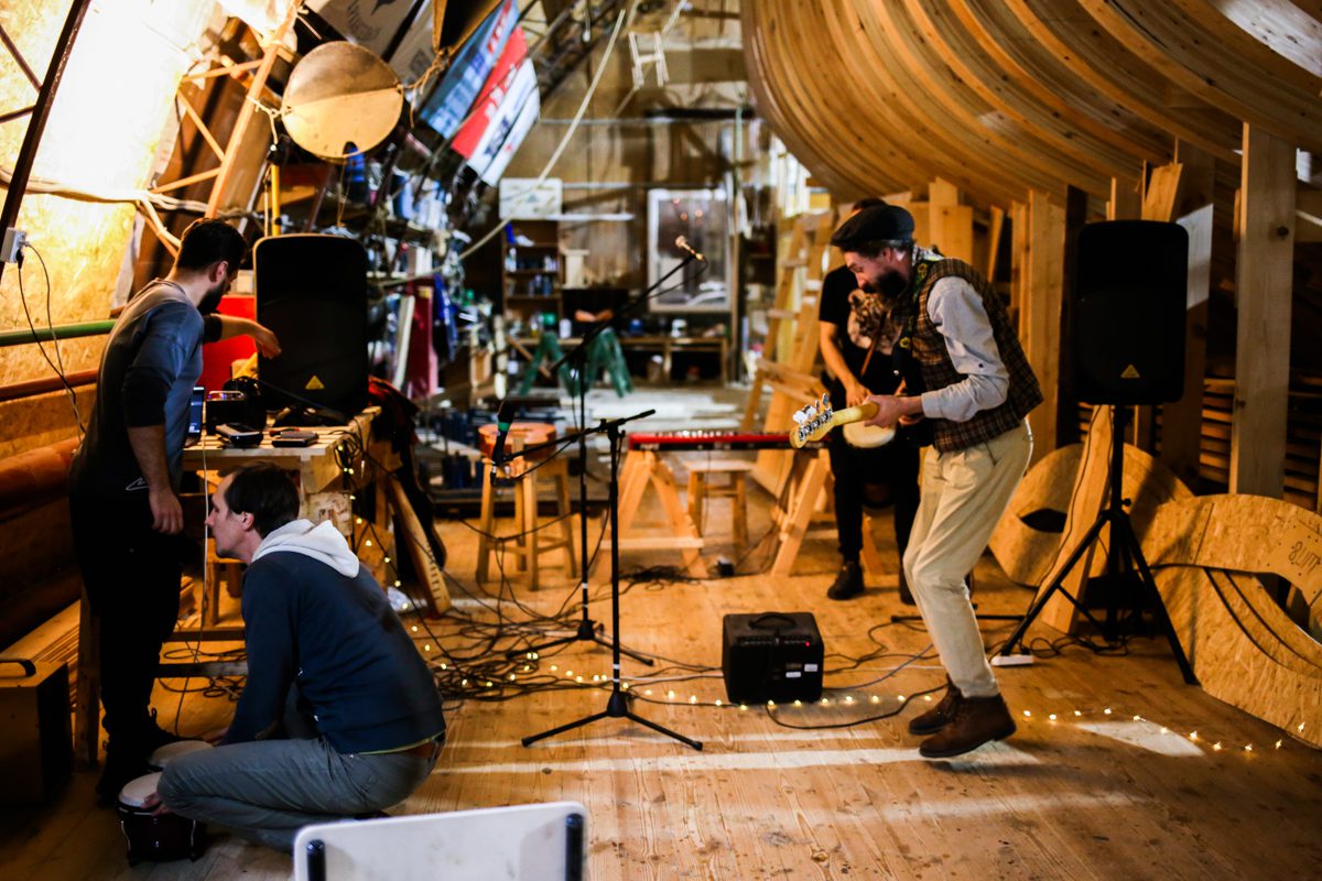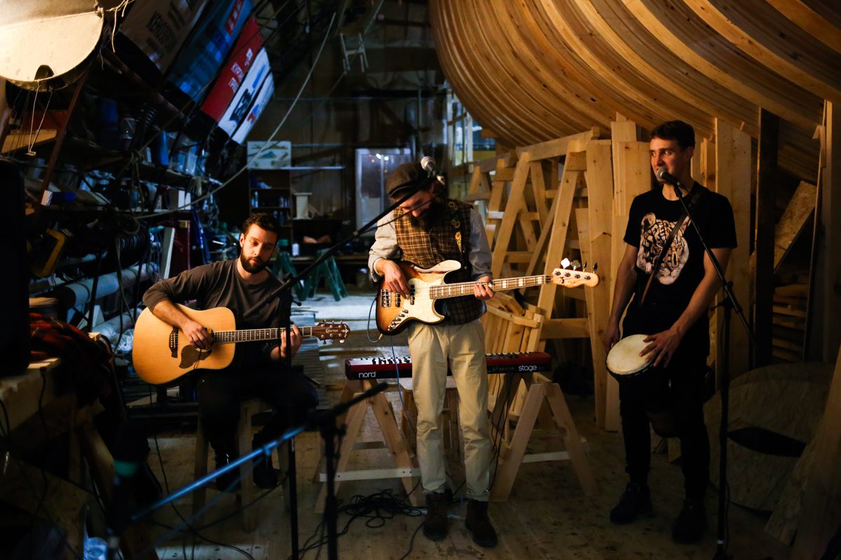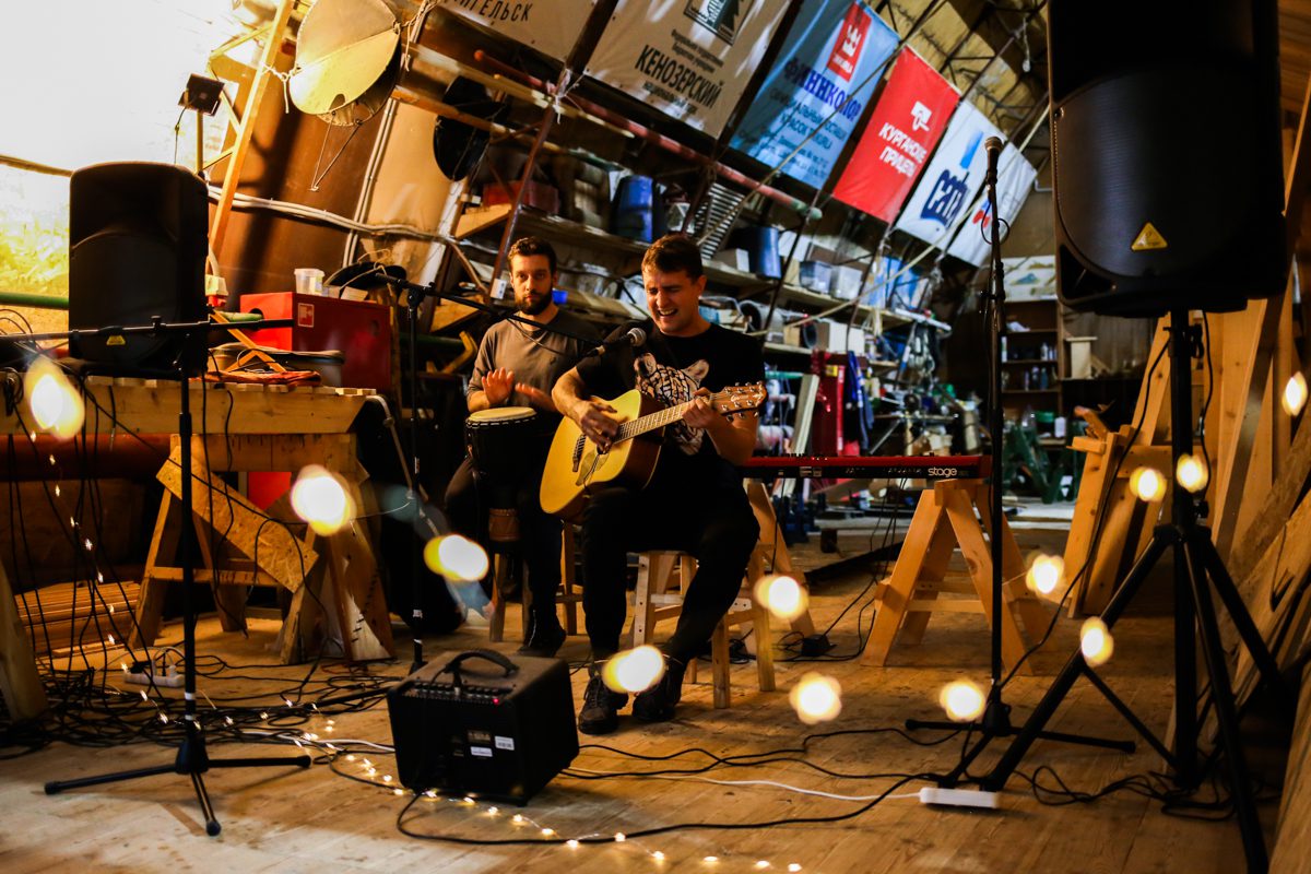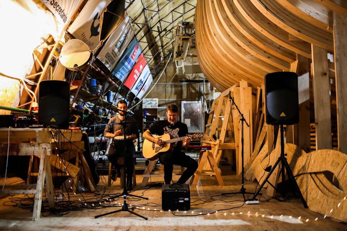 К вечеру прибрались на верфи и устроили концерт: дуэт Кокора и мультиинструменталист Сергей Власов. А после него Миша, Миша, Андрей и Дима устроили поздний джем – для самых стойких слушателей.