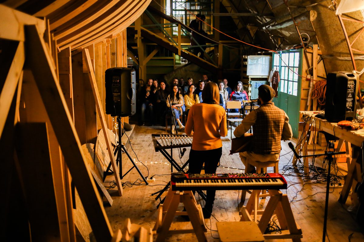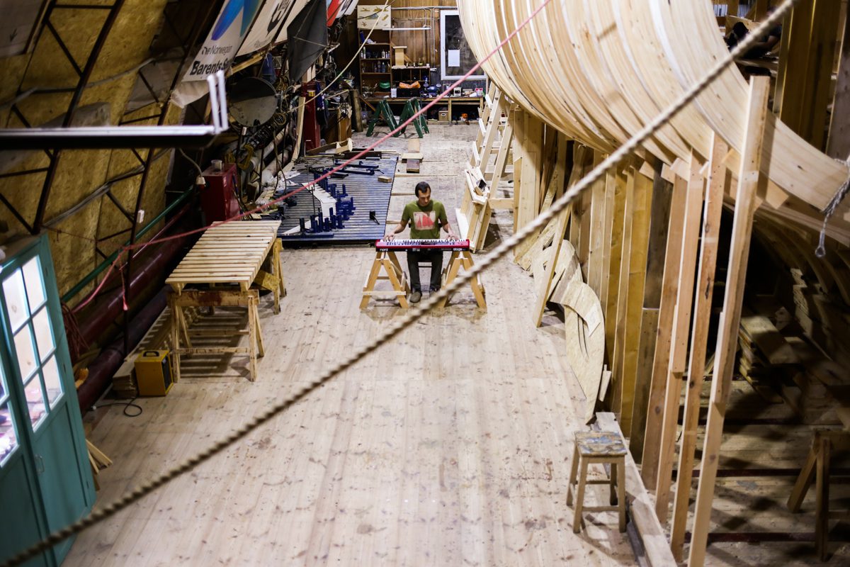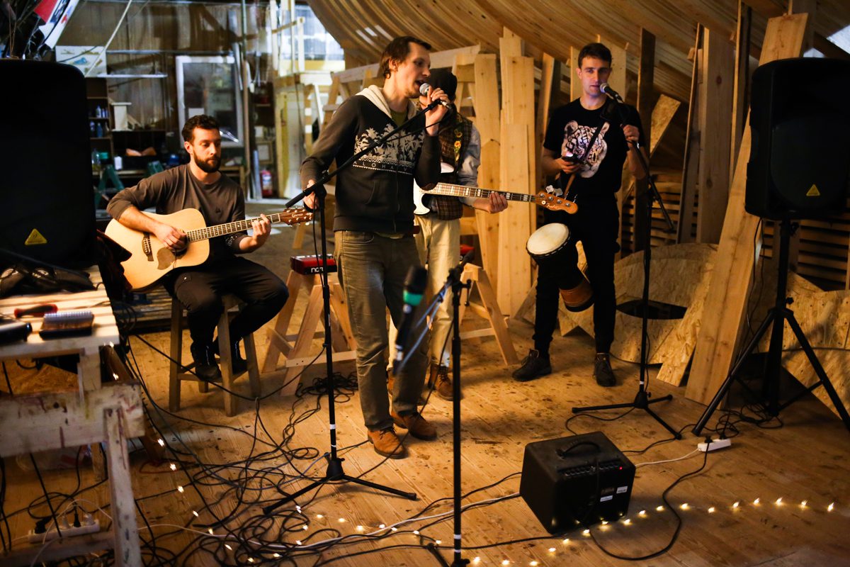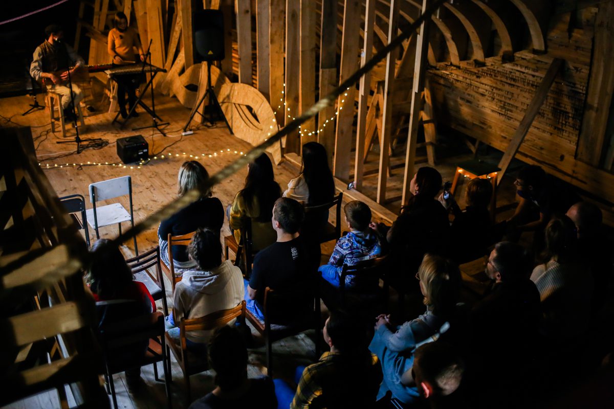 К вечеру прибрались на верфи и устроили концерт: дуэт Кокора и мультиинструменталист Сергей Власов. А после него Миша, Миша, Андрей и Дима устроили поздний джем – для самых стойких слушателей.