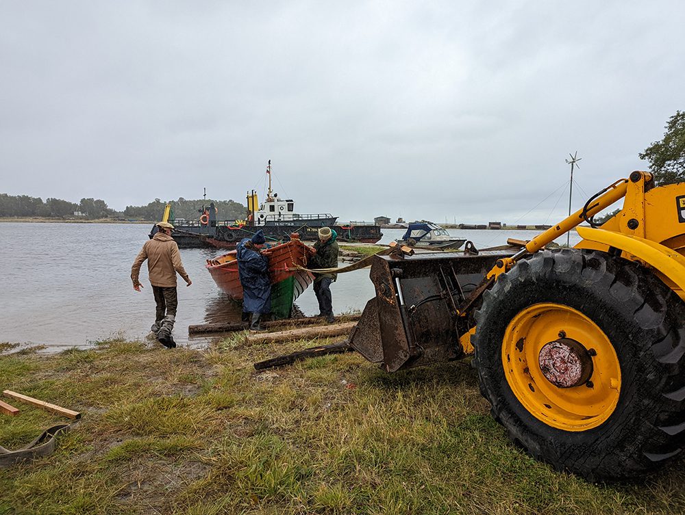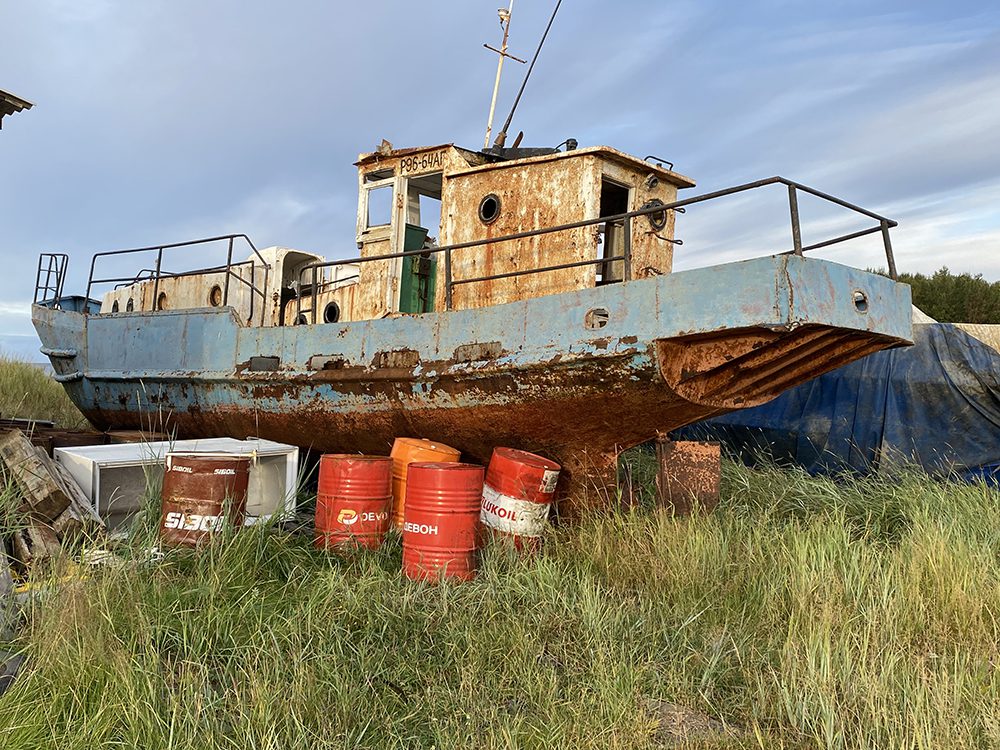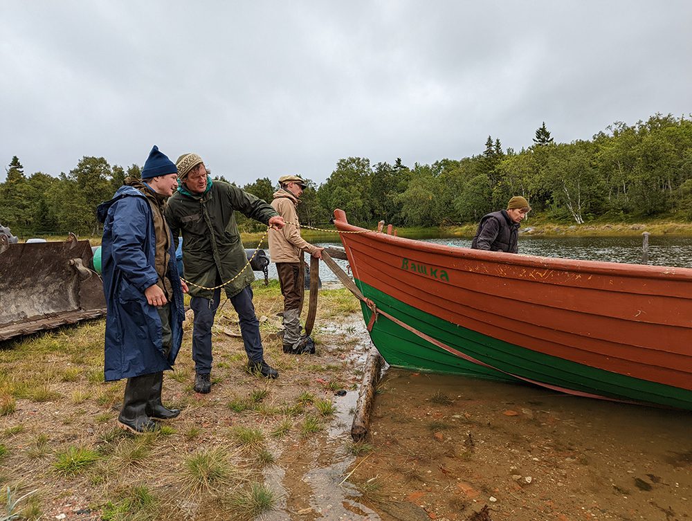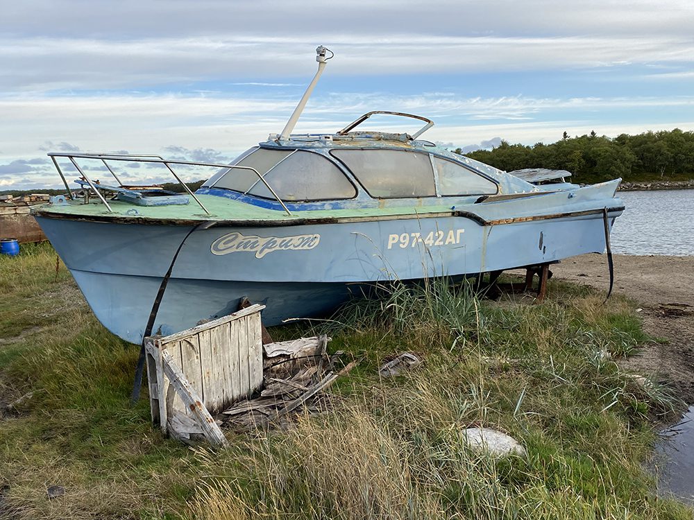 И все-таки пришла пора принимать решение. Отпуска заканчивались, погода не пускала и становилась все хуже — мы решили оставить «Вашку» зимовать на Соловках, в хозяйстве Владимира и Алексея Сошиных. Алексей пригнал трактор и мы вытащили карбас на берег.