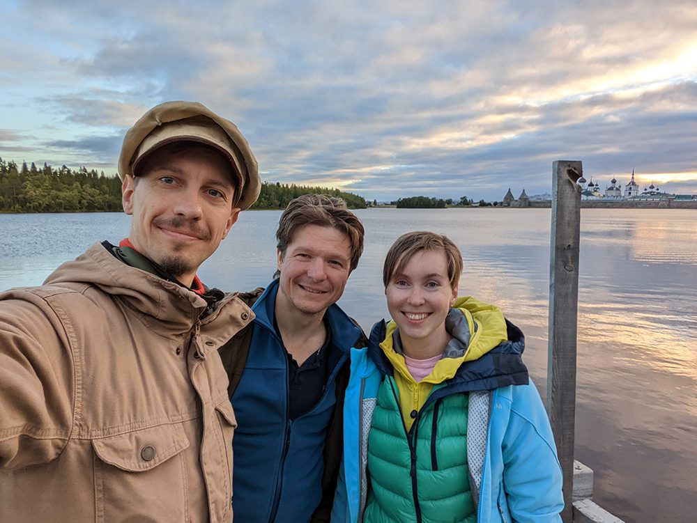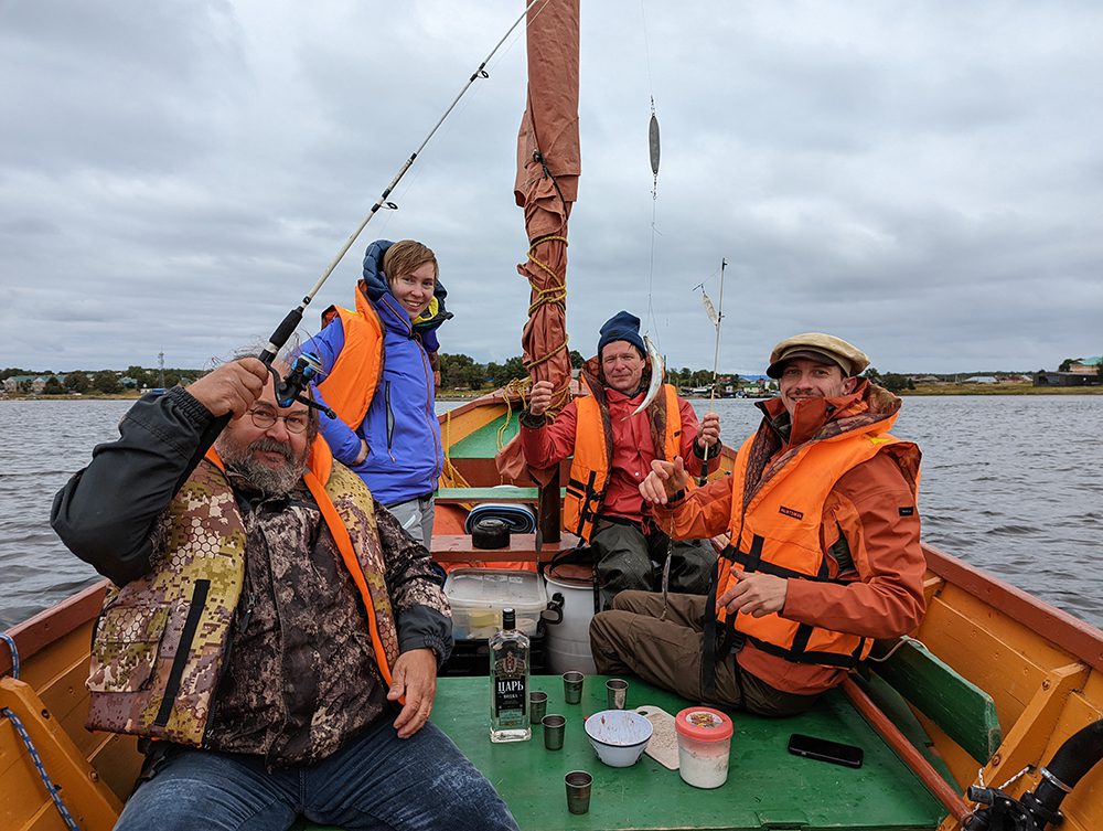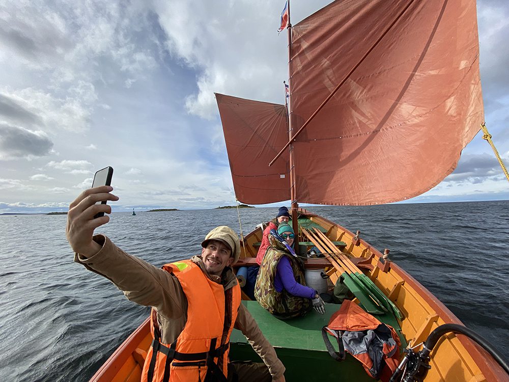 Нас пятеро: Дмитрий Панкратов, Евгений Петров, Лида Борисенко, Максим Матвеев (он немного задержался на Соловках с прошлого плавания) и Евгений Шкаруба. После удивительно хорошей погоды в августе в Белом море наступила пора осенних штормов и наше плавание с Соловков в Архангельск отложилось. Сначала на один день, потом на второй… И так дальше. Каждый день по многу раз мы открывали прогноз и пытались поймать хоть небольшие измененния в лучшую сторону. Каждый раз расчитывая переход мы оказывались на встречном ветру или в Соловецкой Салме или у Летнего берега Онежского полуострова. Ничего не получалось. Северный ветер набирал обороты, картинка прогноза становилась удручающе безнадежной.
