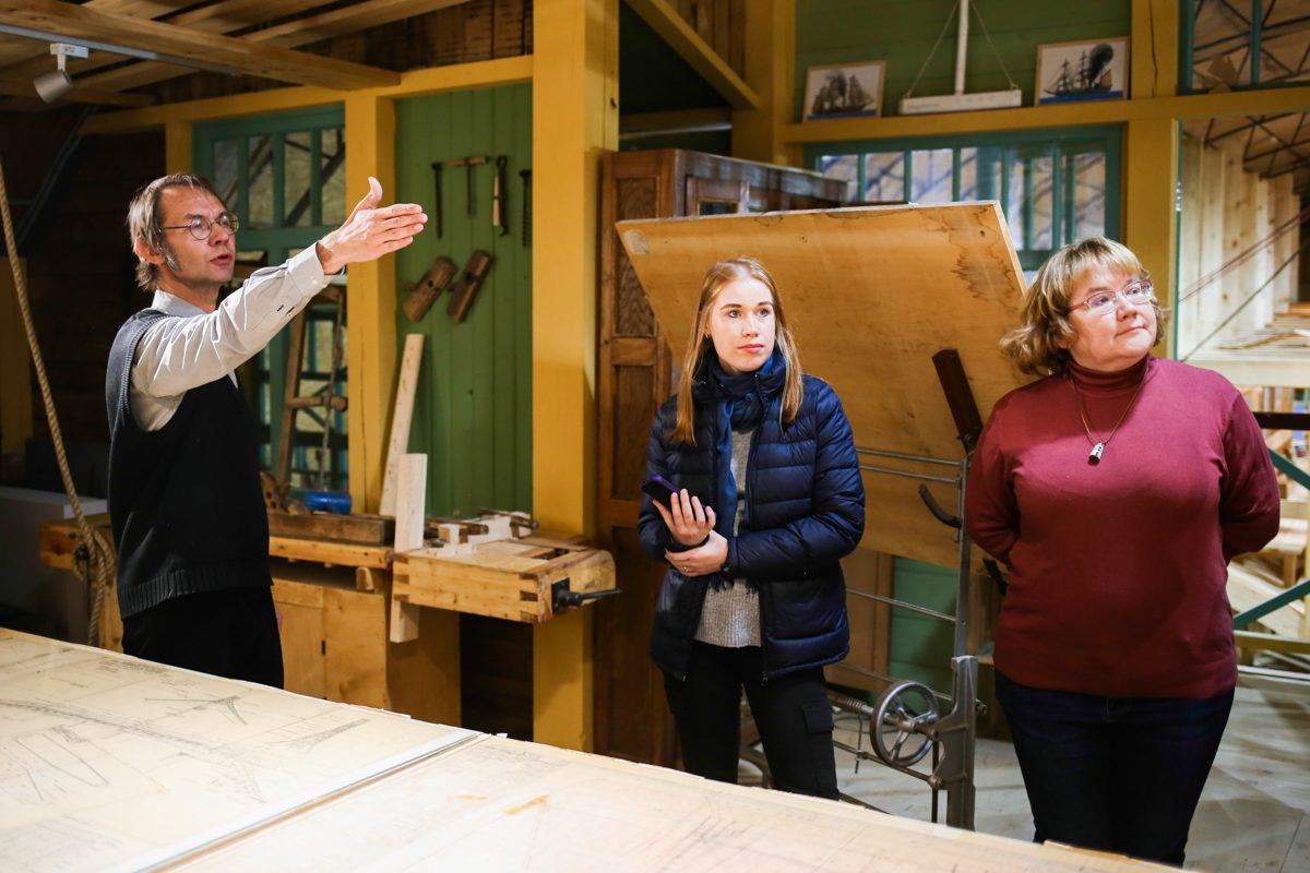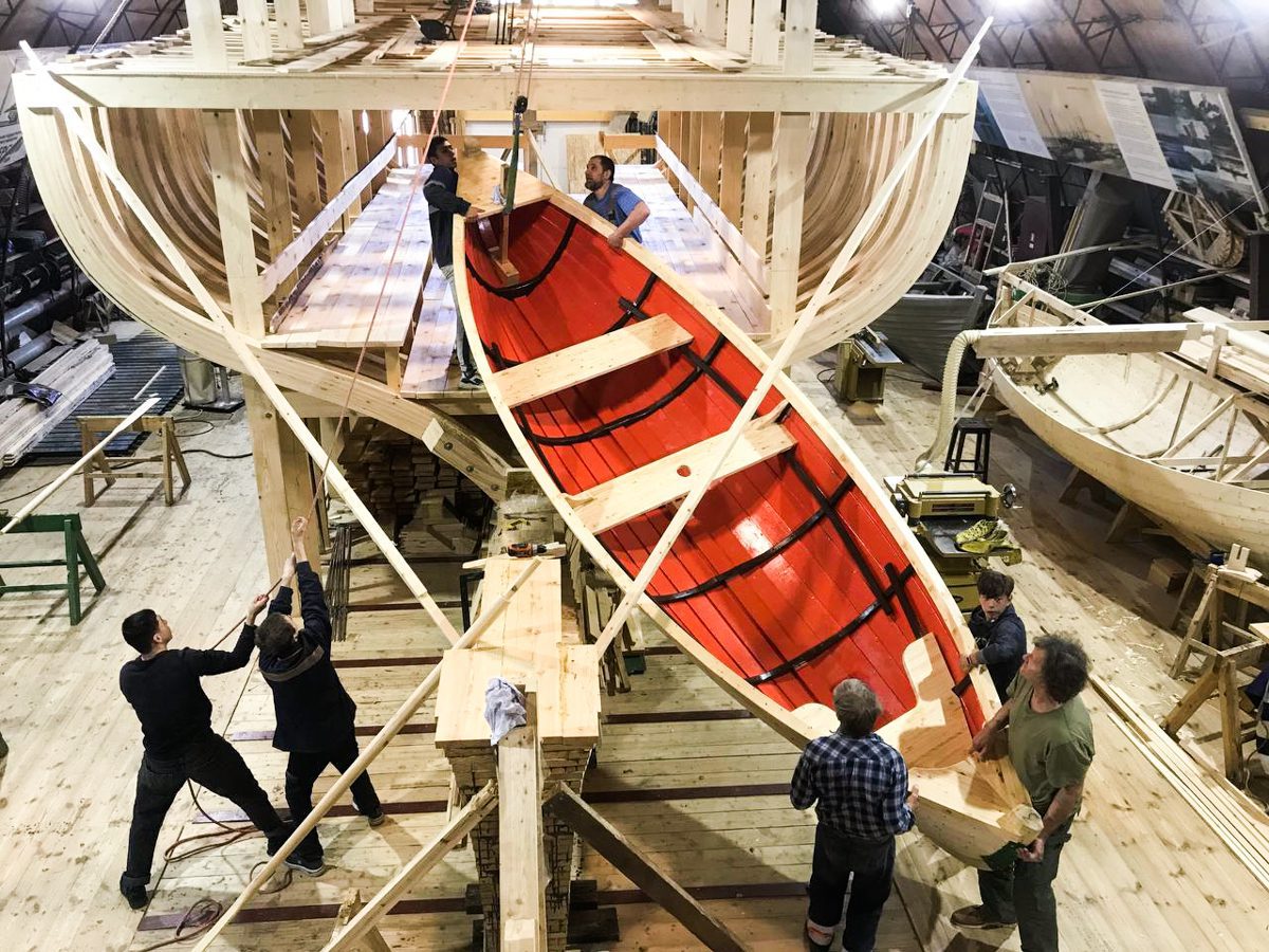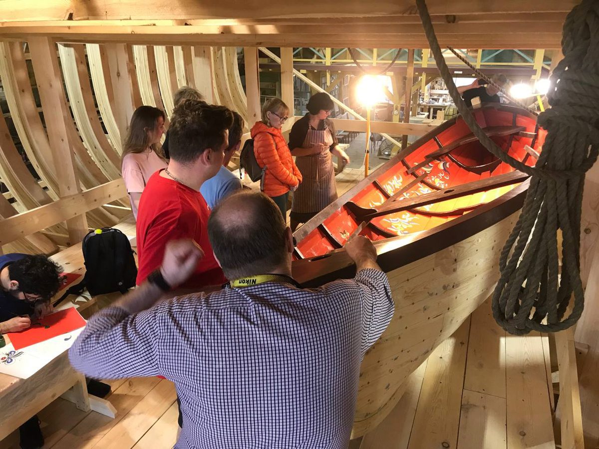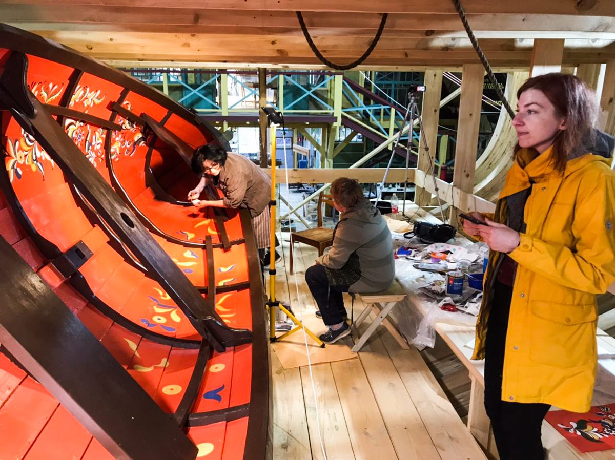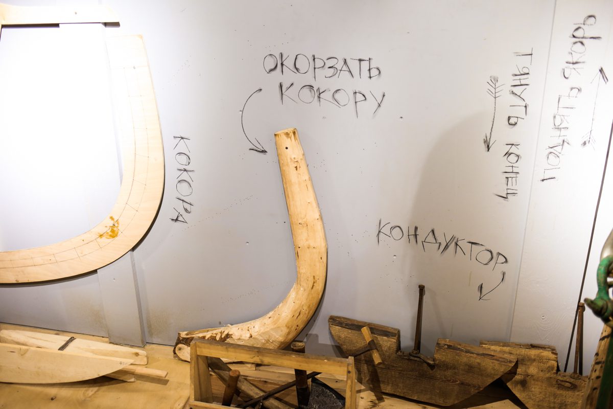 Уникальным творческим пространством и мастерской проекта стало пространство строящийся на верфи деревянной Поморской шхуны. Для устройства пространства и мастерской внутри шхуны оборудованы пол, лестницы и перила.