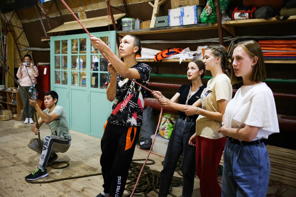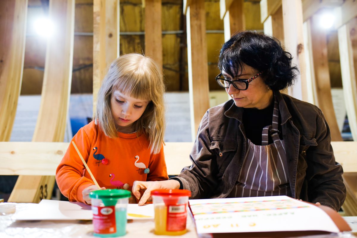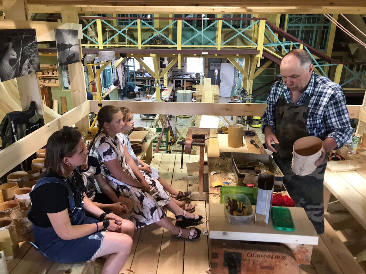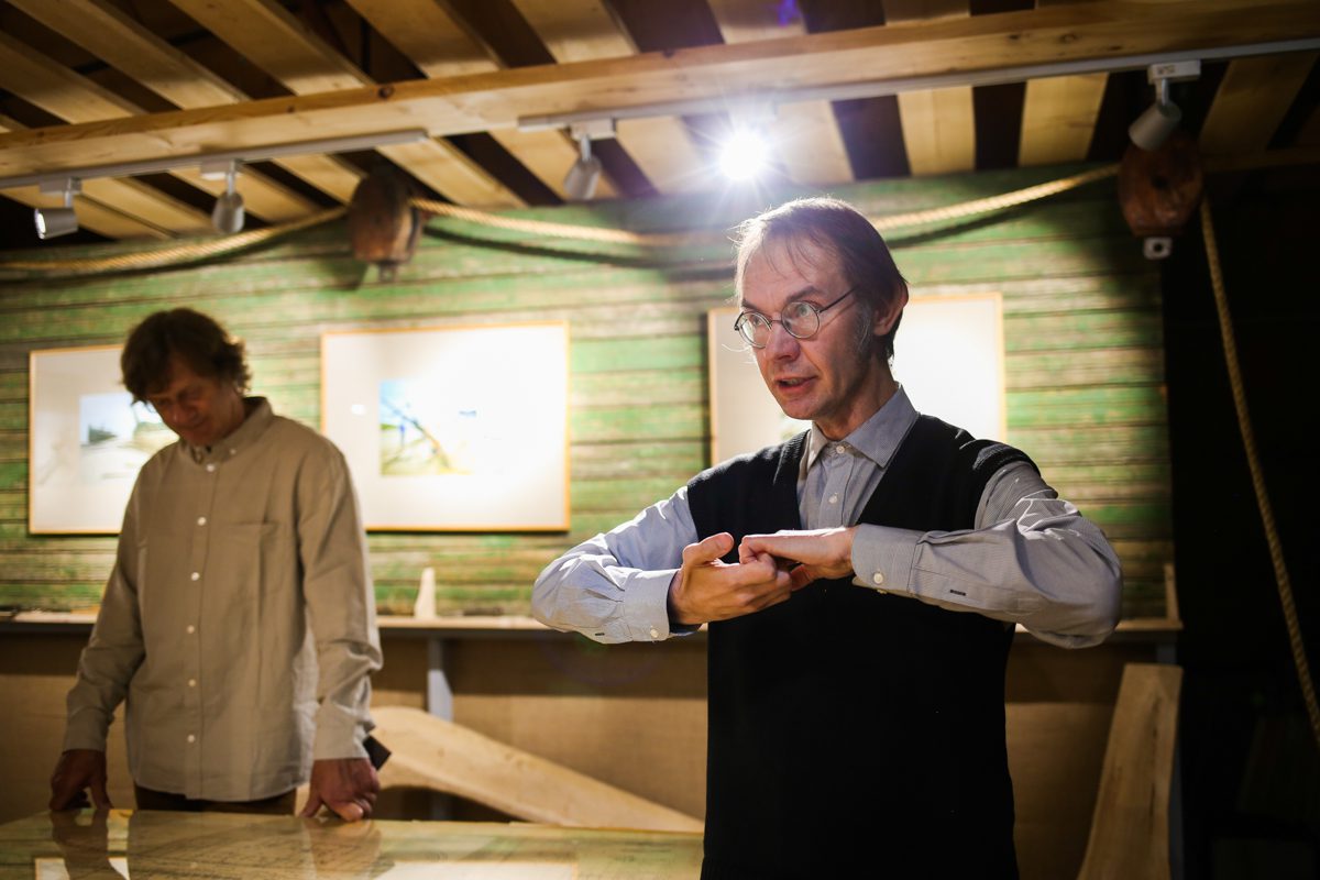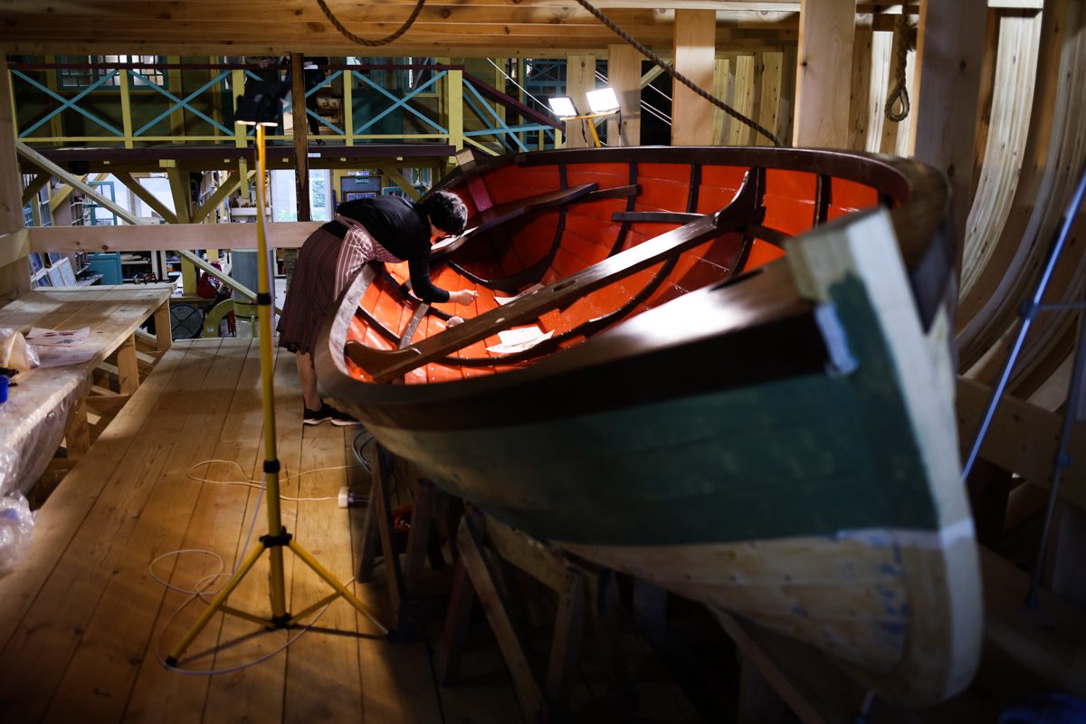 Уникальным творческим пространством и мастерской проекта стало пространство строящийся на верфи деревянной Поморской шхуны. Для устройства пространства и мастерской внутри шхуны оборудованы пол, лестницы и перила.
