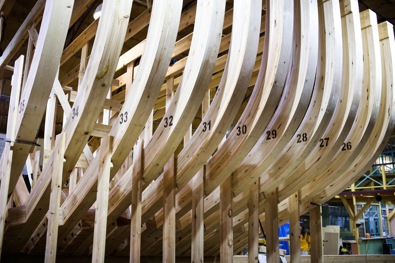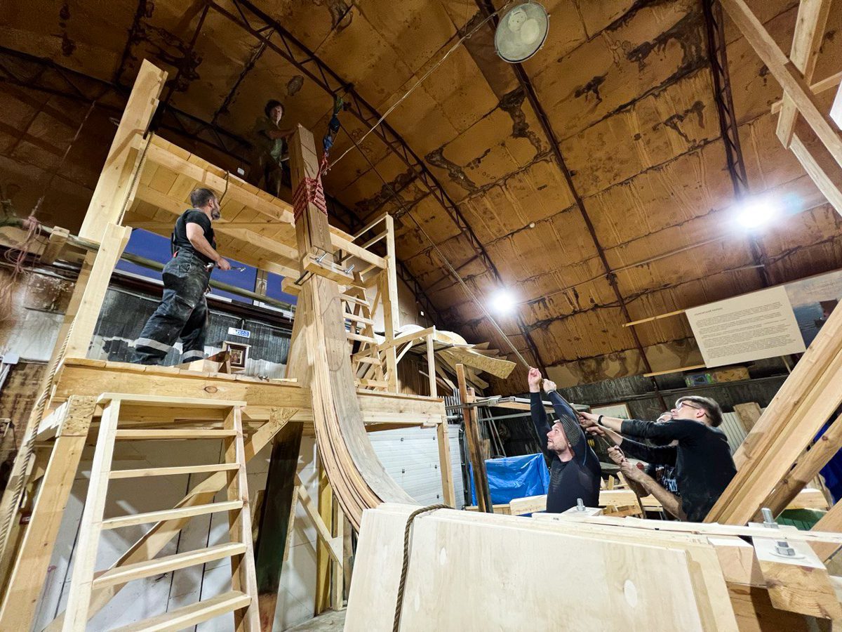 Строительство шхуны продолжается. Заканчивается установка шпангоутов, готовы кормовой дедвуд, старн-пост и горн-тимберс. Начаты работы в носу судна — готовится к выклейке фальстем. До Нового 2023 года мы планируем эти работы закончить и приняться за продольные кильсон, стрингера, привальные брусья. Ждем волонтеров и учеников Школы Судостроения к нам на верфь в помощь!