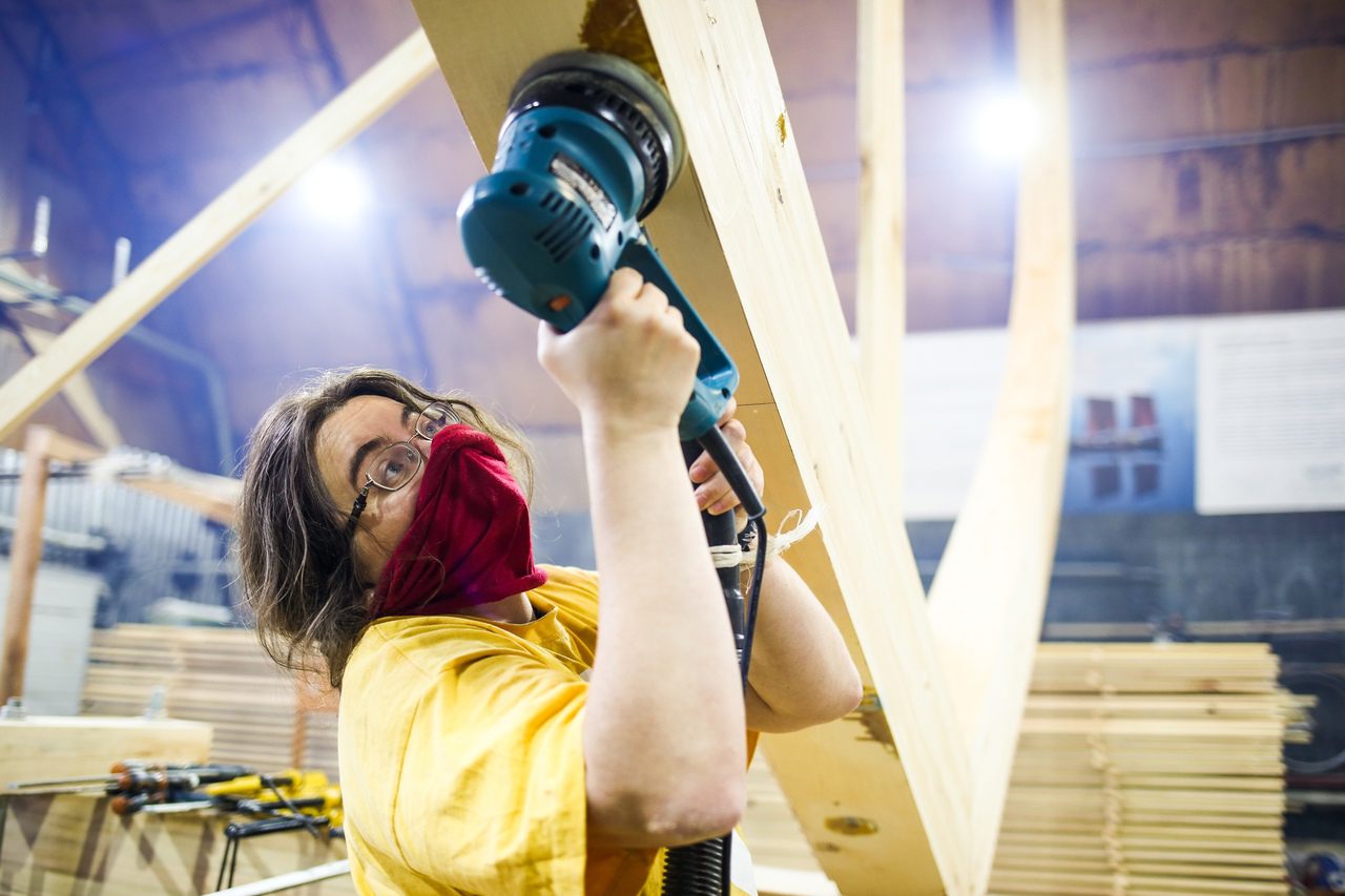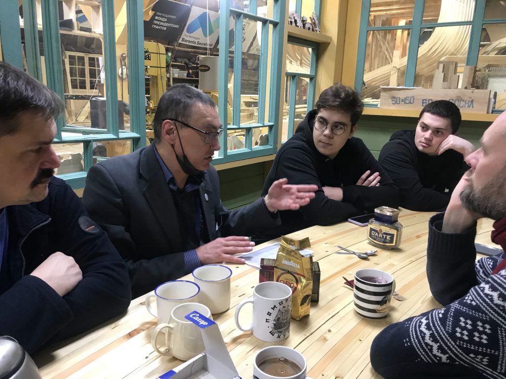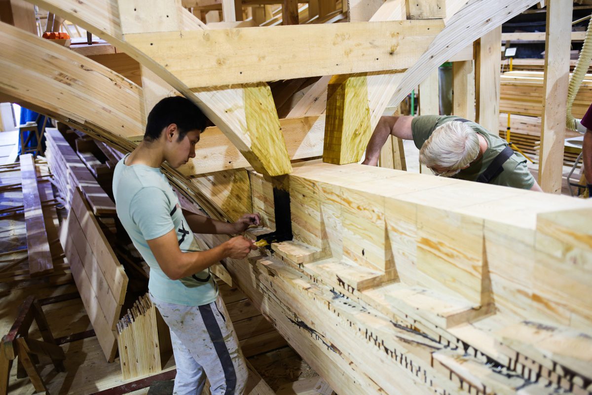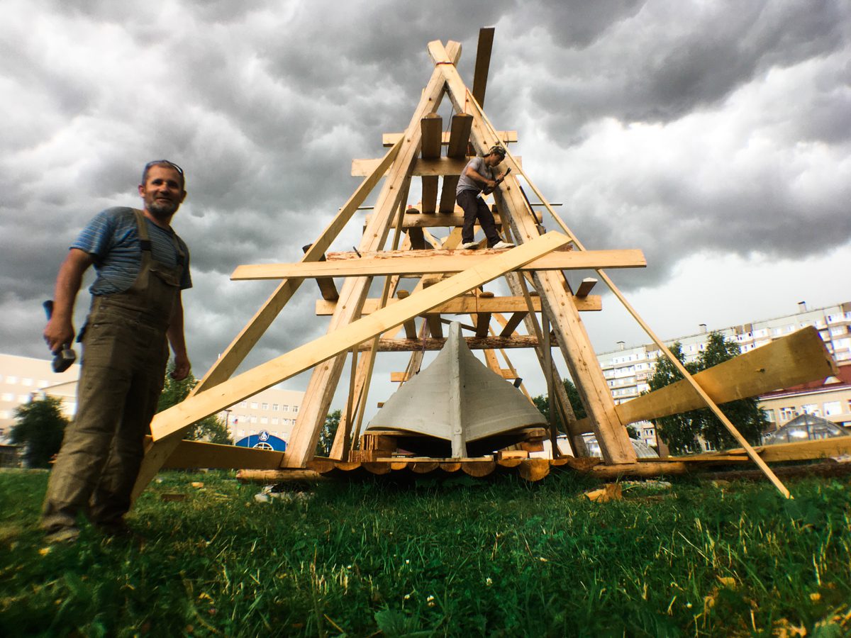 Участие в проекте стало школой-практикумом плотницкого и столярного мастерства: в постройке деревянного объекта приняли участие работники и волонтеры верфи Товарищества поморского судостроения, студенты САФУ, молодежь и представителей старшего поколения Архангельска.