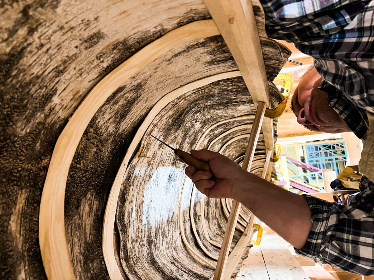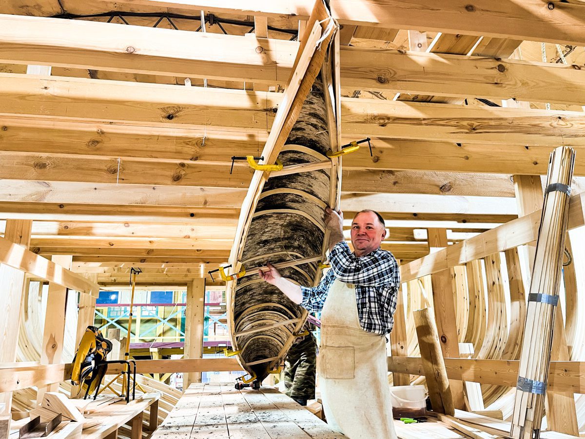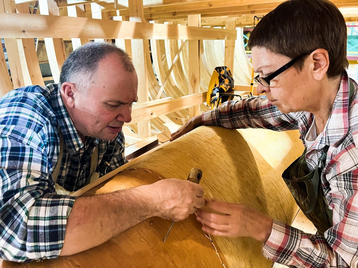 Мастер-класс по шитью традиционной берестяной лодки (мастер — Александр Шутихин).