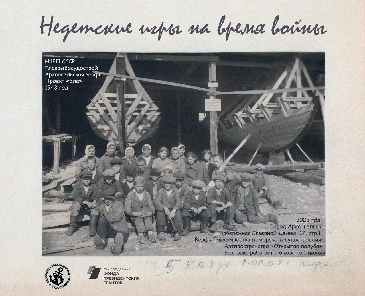 Весной 2020 года в Архангельске на Соломбальский судостроительной верфи (основана в 1911 году под названием Поморский Эллинг) был найден уникальный архив конструкторского бюро. Архив Соломбальской судостроительной верфи является уникальным в современной России архивом по количеству и качеству информации о деревянном судостроении. Чертежи, техническая документация, библиотека книг начиная с середины 40-х годов прошлого века имеют историческую, судостроительную, краеведческую ценность. Архив насчитывает несколько тысяч чертежей и технических документов на выпускавшуюся предприятием продукцию — деревянные суда: зверобойные шхуны, промысловые боты, яхты, катера, спасательные шлюпки, карбасы и др. Сохранение архива Соломбальский судостроительной верфи является важным вопросом историко-культурологического плана так как промышленное деревянное судостроение является прямым продолжением народного традиционного судостроения на Русском Севере. Продукция Соломбальский судостроительной верфи на протяжении многих десятилетий использовалась для освоения богатств Советской Арктики, наследницей которой сейчас выступает Российская Федерация. Работа с документами организована Товариществом поморского судостроения в сотрудничестве с Северным (Арктическим) федеральным университетом имени М.В. Ломоносова и жителями Архангельска: волонтерами — добровольными участниками проекта. Архив предоставлен для сканирования С.Н. Николаевым. Все отсканированные чертежи и документы размещаются на сайте-хранилище в открытом доступе. Это обеспечило доступ к чертежам и технической документации архива всех интересующихся историей деревянного судостроения, исследователей-краеведов, профессионалов деревянного судостроения, занимающихся сохранением и развитием традиций судостроения Русского Севера. Полученная сумма гранта: 2 994 990,00 рублей.