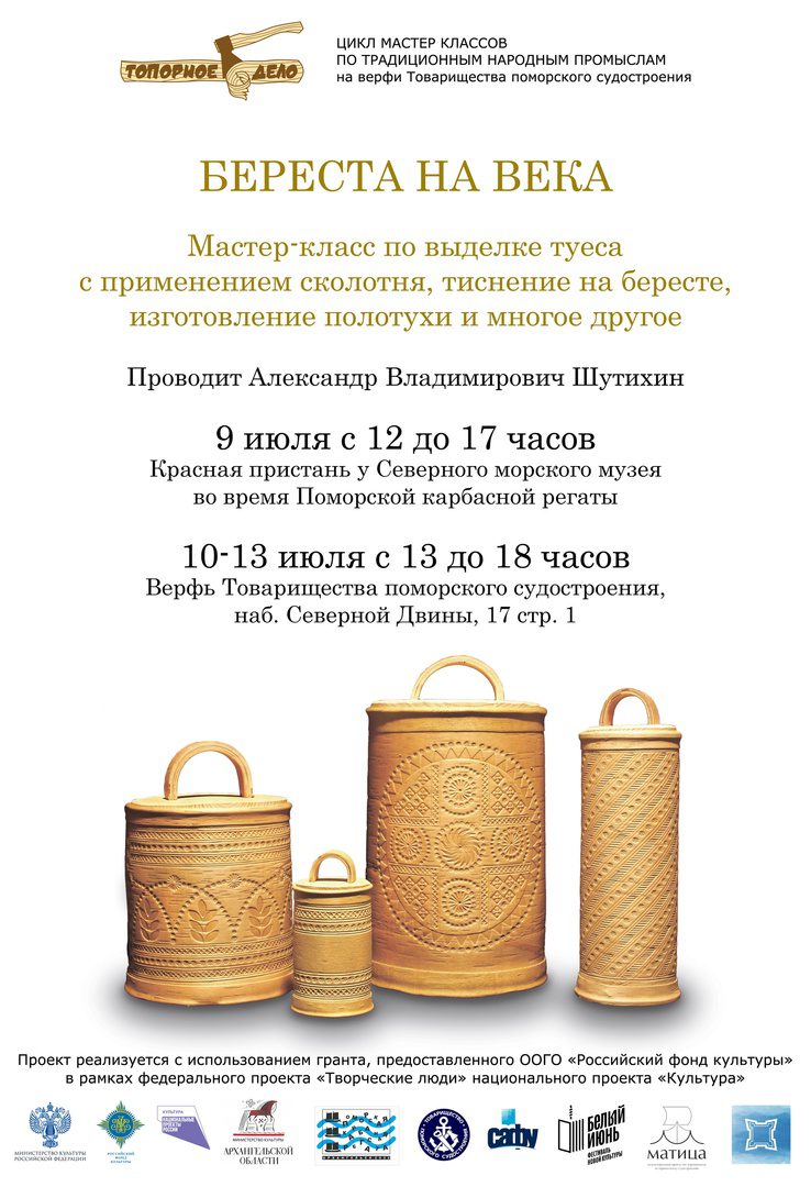 В ходе проекта «Топорное дело» на верфи Товарищества поморского судостроения прошел цикл мастер-классов и выставок по традиционным народным промыслам Архангельского Севера: