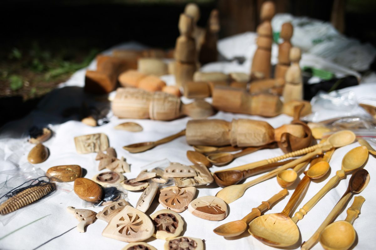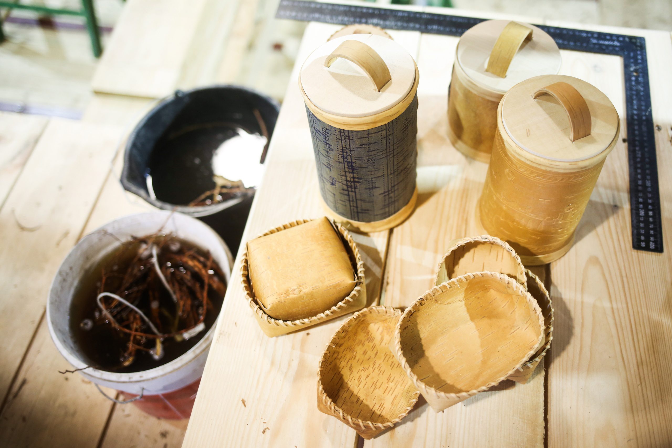 Мастер-класс по выделке туеса с применением сколотня, тиснение на бересте, изготовление полотухи и многое другое (мастер — Александр Шутихин).
